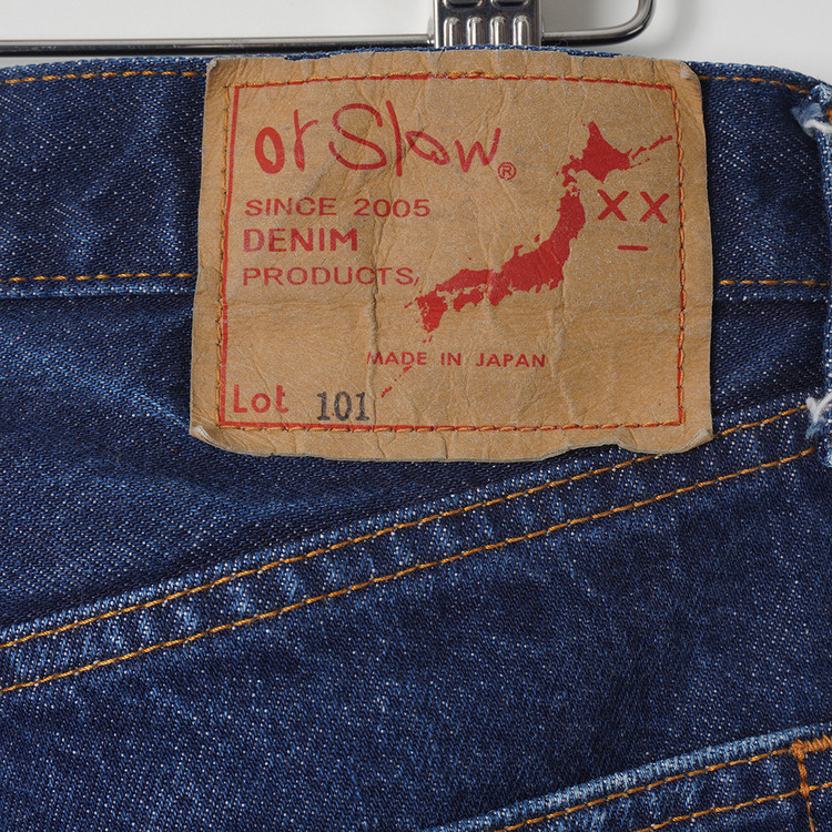 오어슬로우의 인디고 101 데님팬츠입니다. 루즈, 릴랙스한 핏의 제품으로 논워싱 인디고 컬러제품이 약간의 워싱이 진행된 상태입니다. 밑단 수선없는 제품으로 우수한 컨디션으로 입고되었습니다.