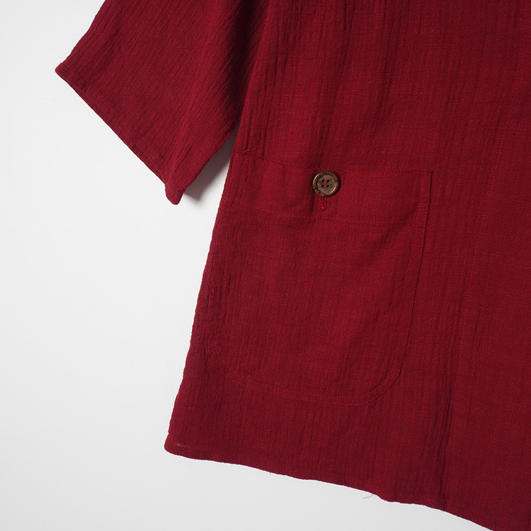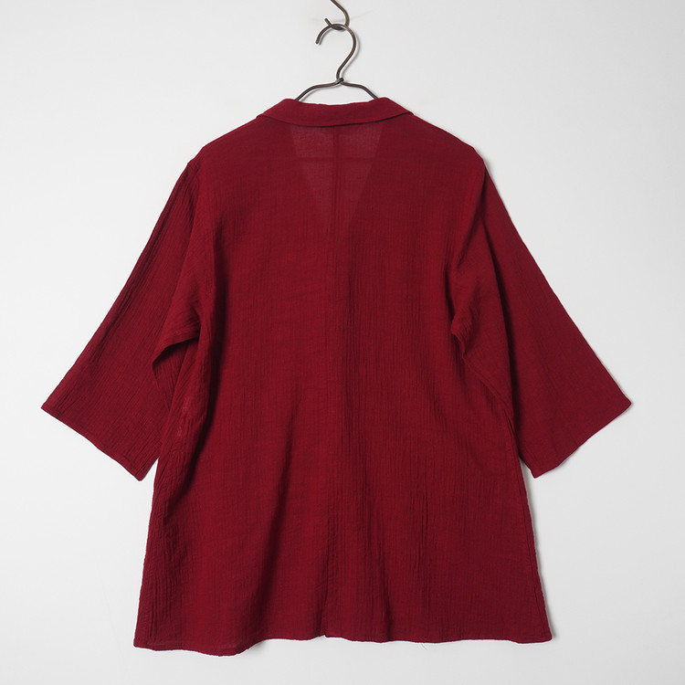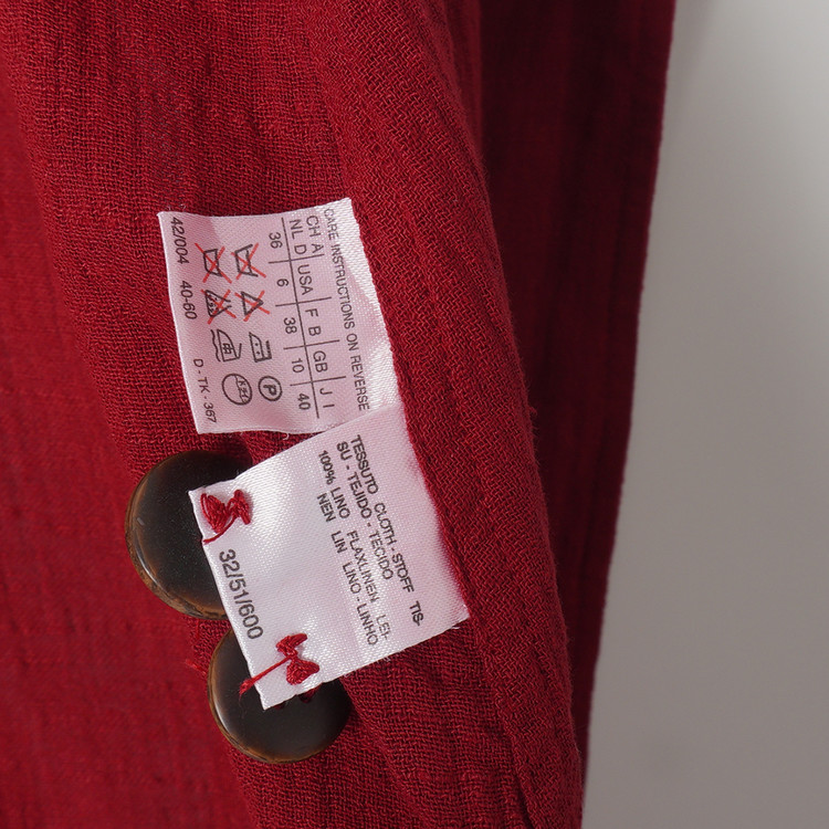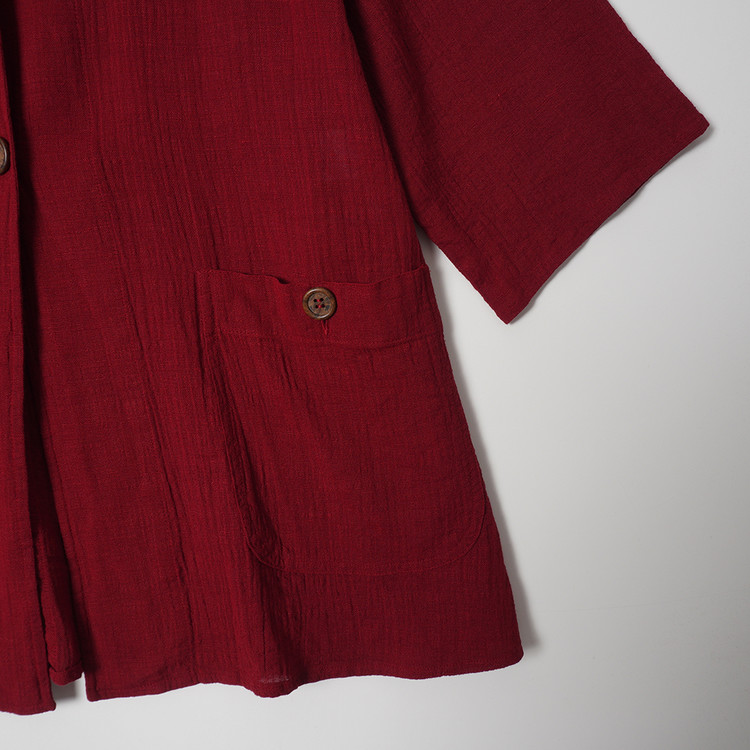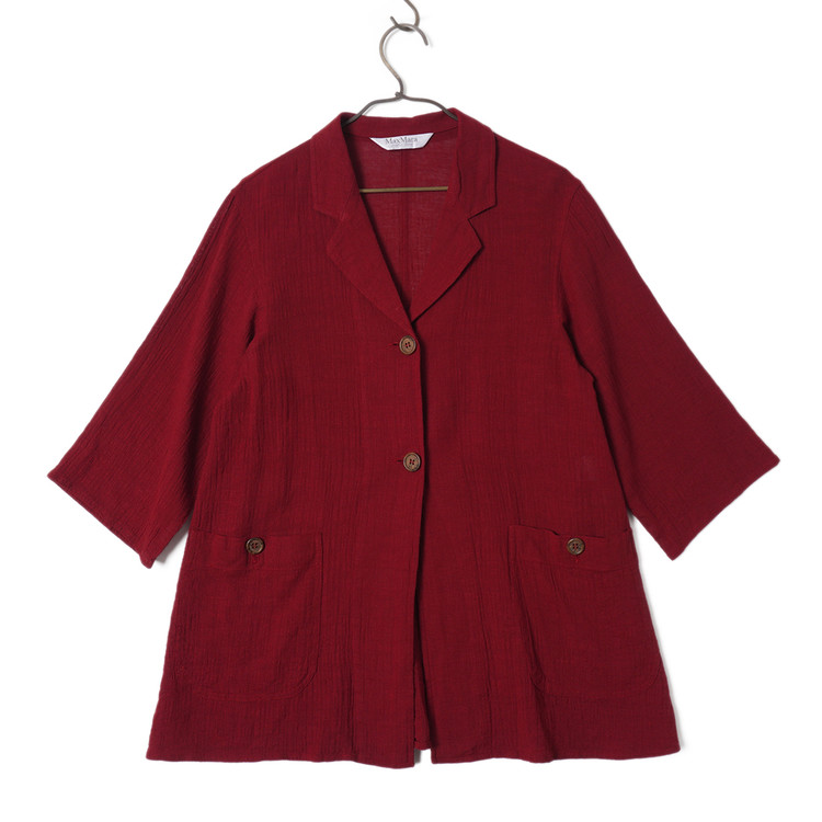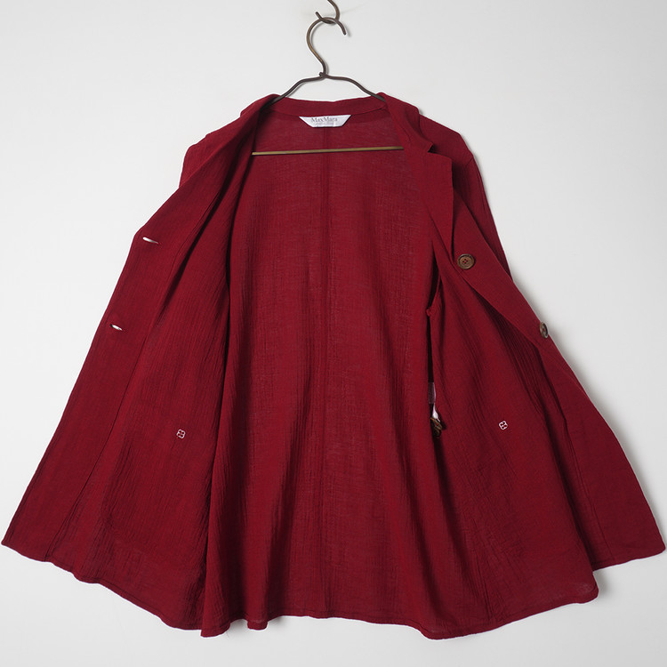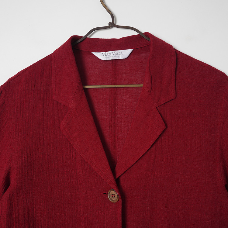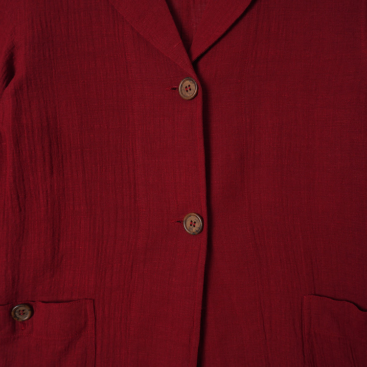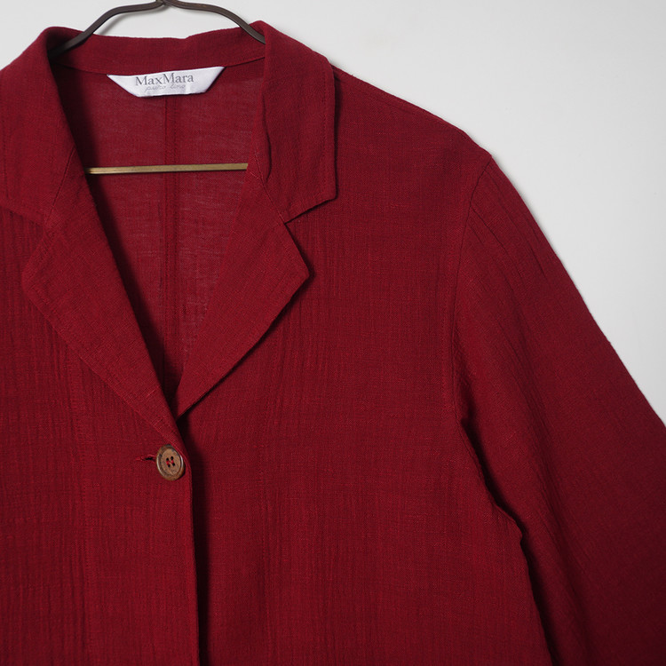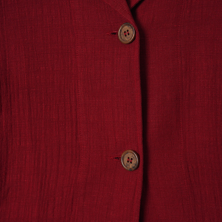 우먼즈 버건디 린넨 버튼 자켓