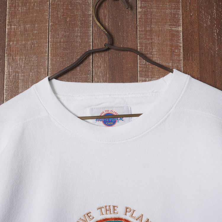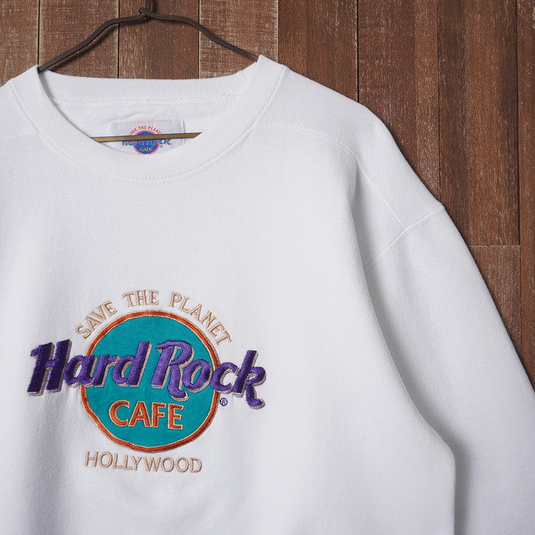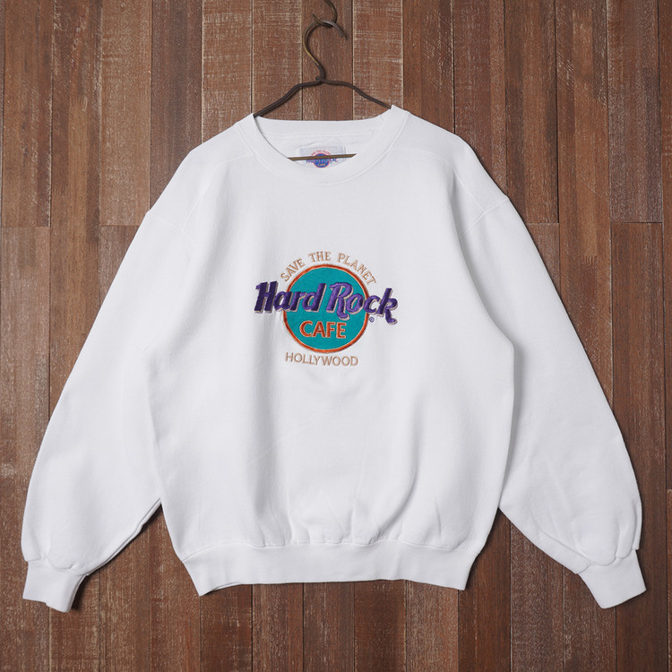 90's 하드락카페 헐리우드 자수 그래픽 화이트 스웻셔츠