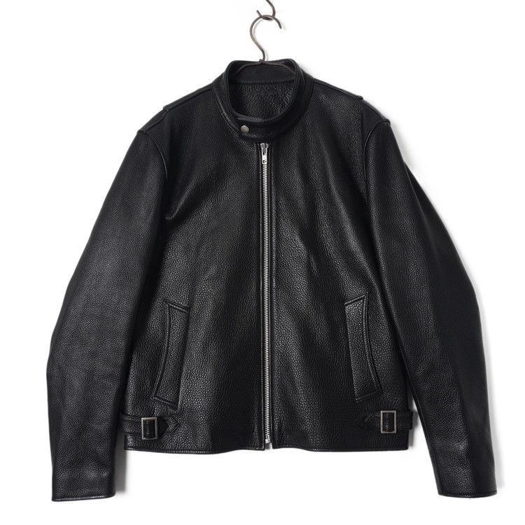 두께감있고 묵직한 소가죽이 사용된 싱글라이더 자켓입니다. 흠잡을데 없는 깔끔한 디자인과 핏감, 사용감 거의없는 매우 우수한 컨디션의 제품입니다.