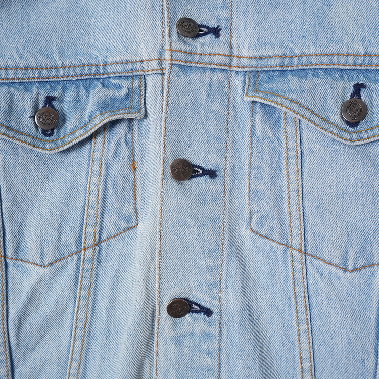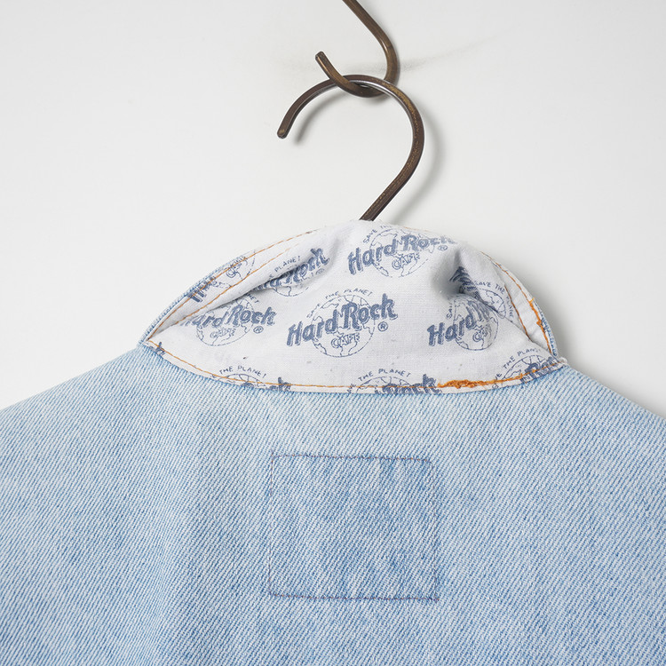 넉넉한 사이즈감의 90년대 하드락카페 데님자켓입니다. 옅은 컬러의 데님과 자수 그래픽의 조화가 멋진제품으로 4포켓 사양으로 범용성 좋은 제품입니다. 사용감 적은 우수한 컨디션으로 입고되었습니다.