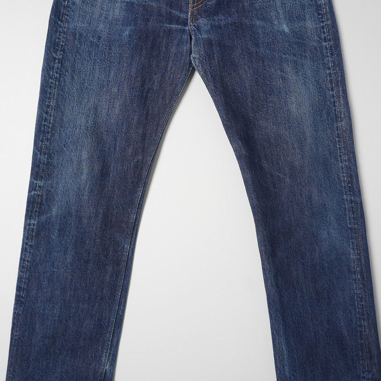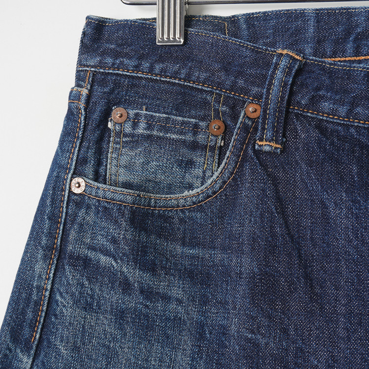 풀카운트와 듀퍼의 콜라보 데님팬츠입니다. 셀비지 사양, 워싱이 진행된 컬러감으로 국내 27-28 사이즈 정도 추천드립니다.