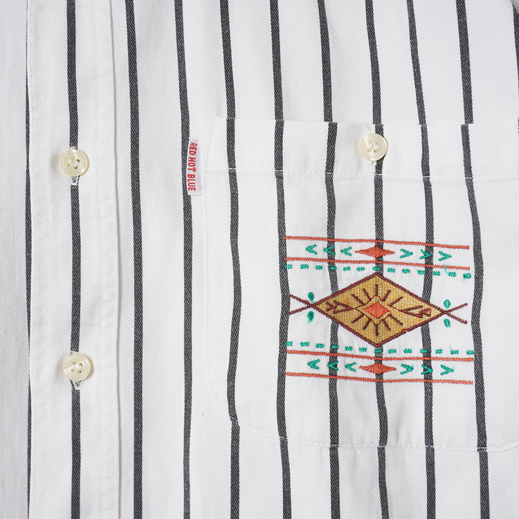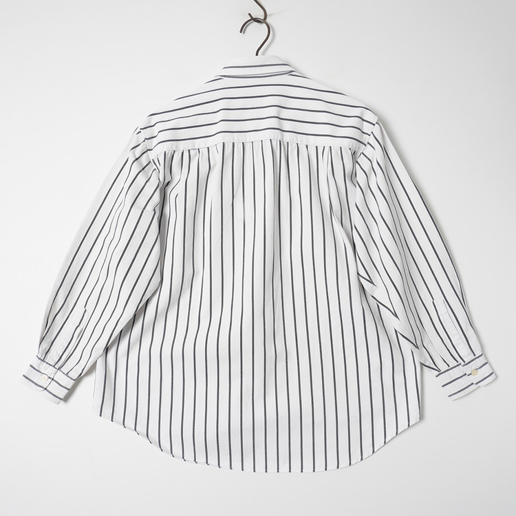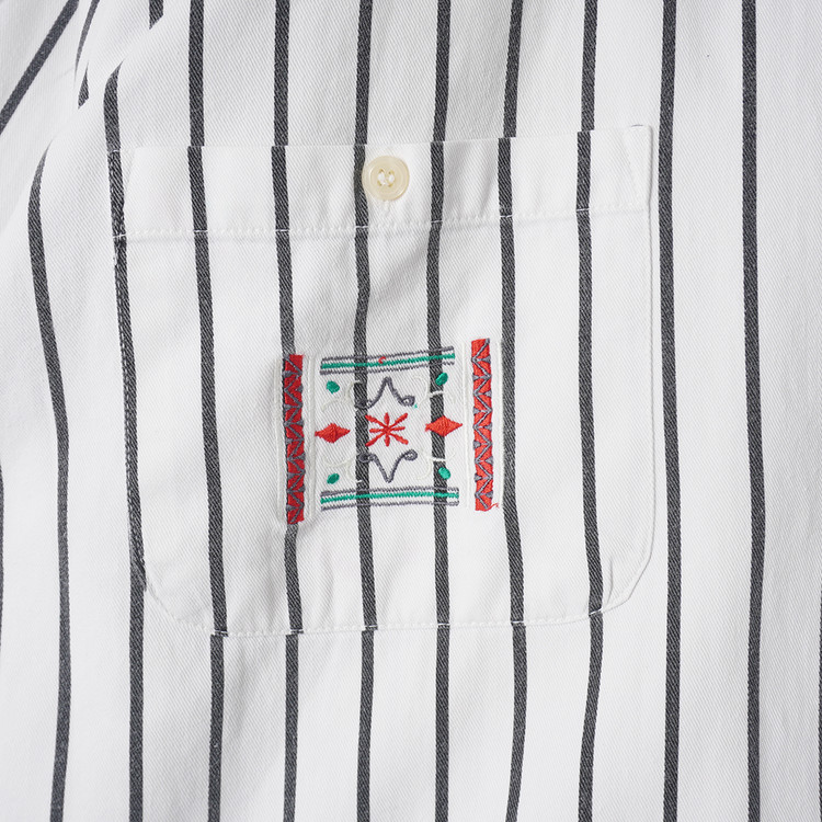 우먼즈 코튼 스트라이프 자수 디데일 셔츠