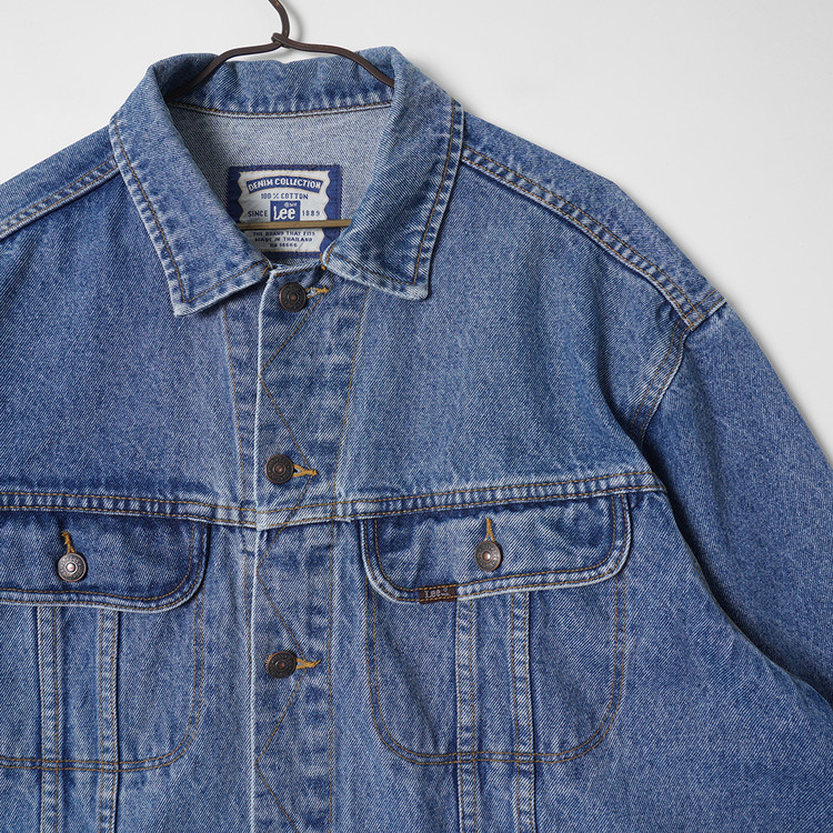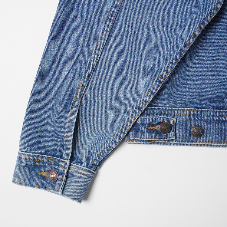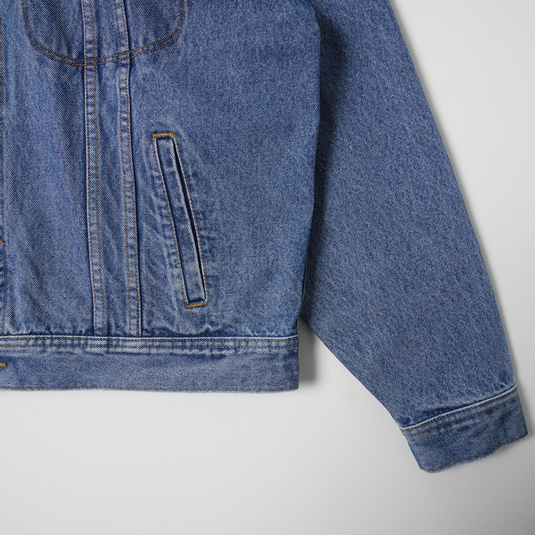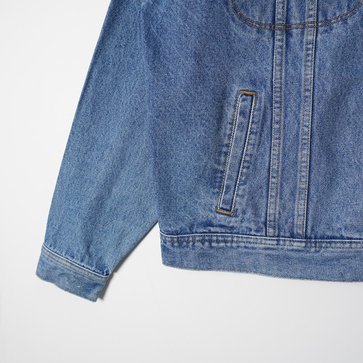 후면 자수 디테일이 유니크한 데님 트러커 자켓입니다.