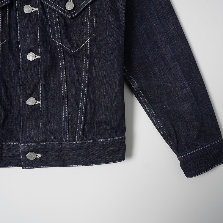 오사카발 컨템포러리 브랜드 EEL의 우먼즈 트러커 자켓입니다. 두께감 있는 셀비지 데님이 사용된 제품으로 작은체구의 여성분께 추천드립니다.