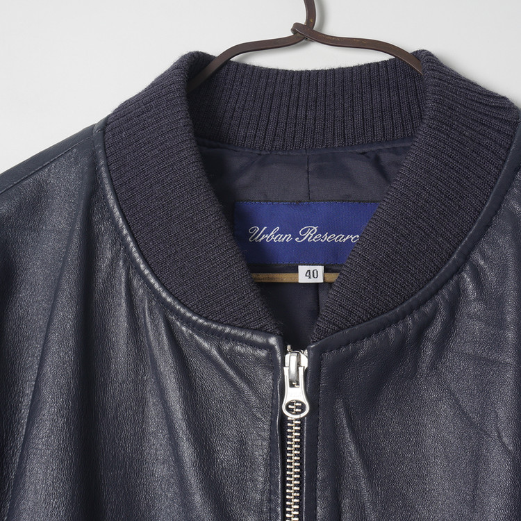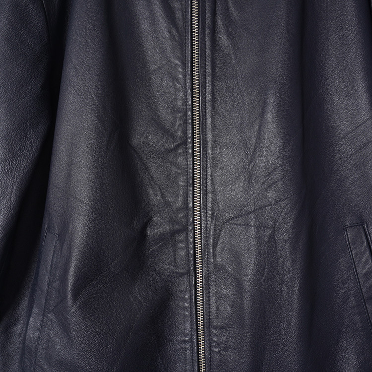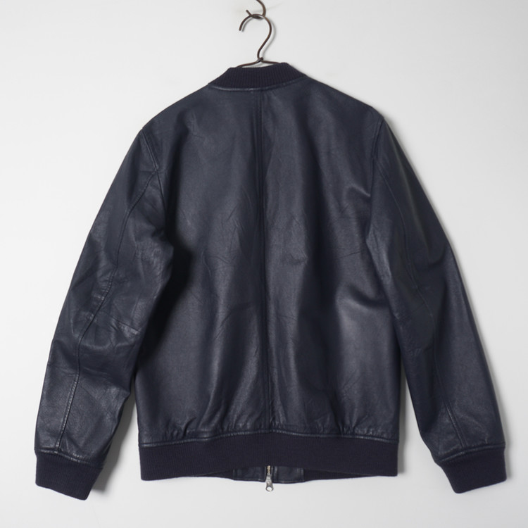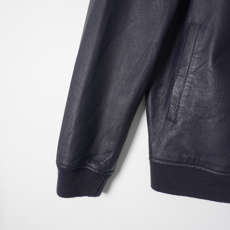네이비 돈피 레더 집업 봄버 자켓