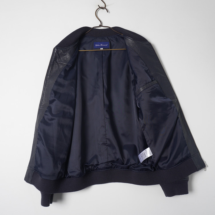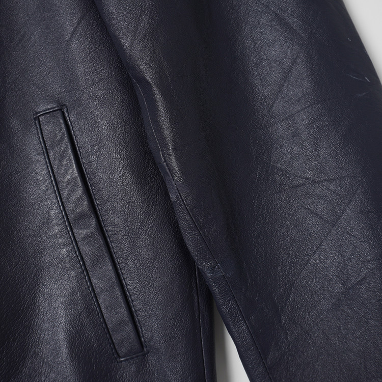 흔치않은 네이비 컬러와 2웨이 집업 스타일의 돈피 가죽 자켓입니다.