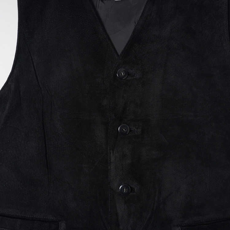 빈티지 돈피 스웻이드 가죽 버튼 베스트