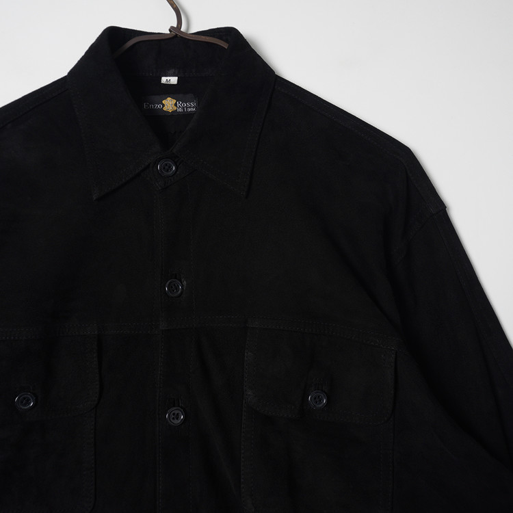 빈티지 블랙 양가죽 스웨이드 셔츠