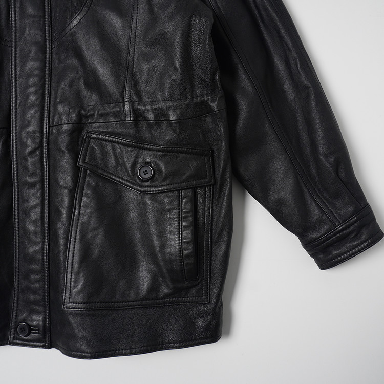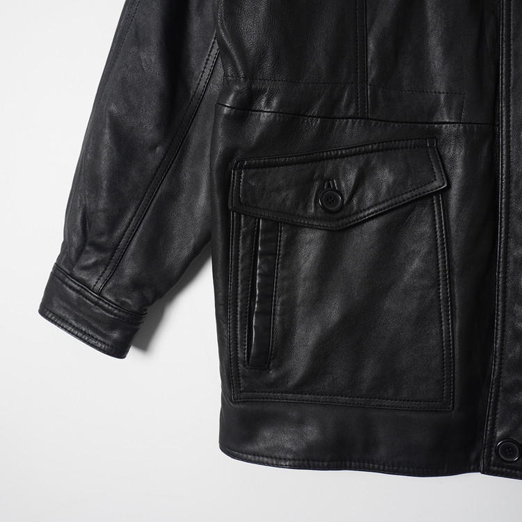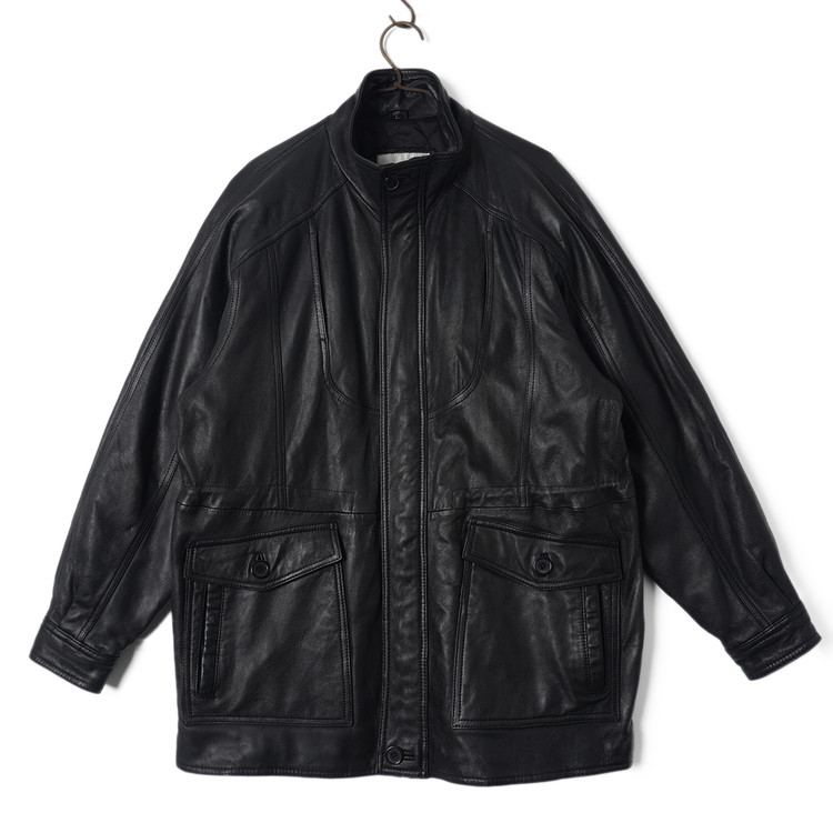 래글런 어깨와 풀집업 스타일의 양가죽이 사용된 사파리/카코트입니다. 지퍼 플라이 여밈방식이며 4포켓 디자인의 제품입니다.  국내 남성 넉넉한 L, 여성 Free 사이즈 추천드립니다.