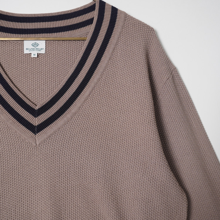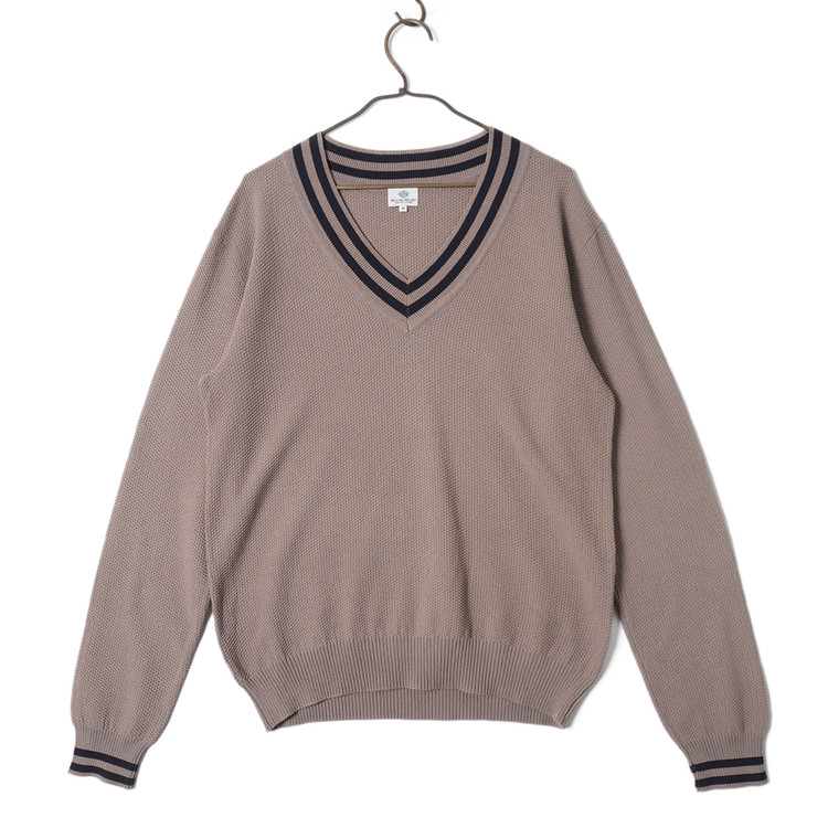 크리켓 니트 스타일의 코튼/폴리 니트 탑입니다. 얇은 두께감으로 편하게 매치하기 좋은 제품입니다. 사용감 적은 우수한 컨디션