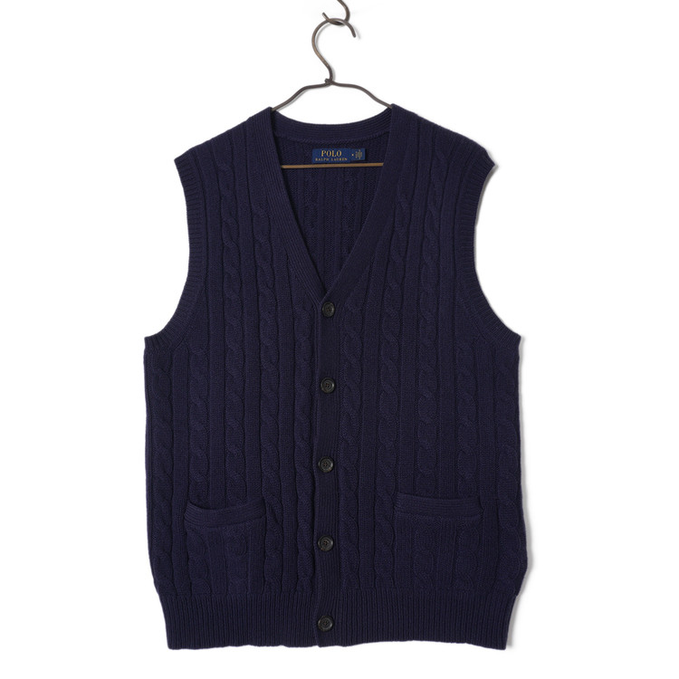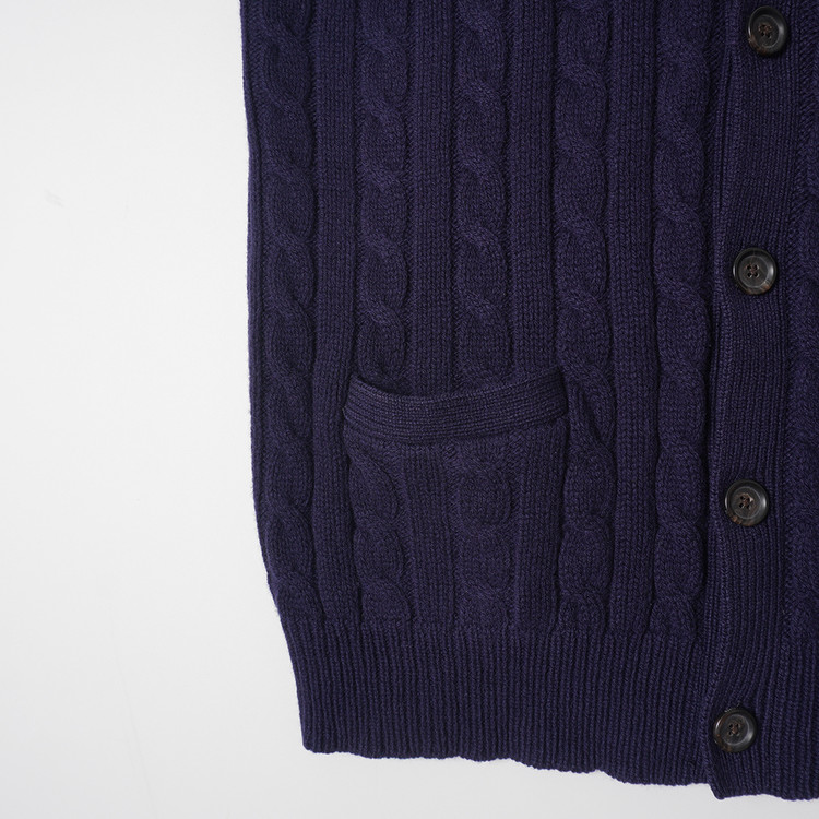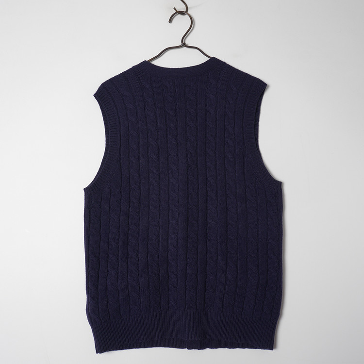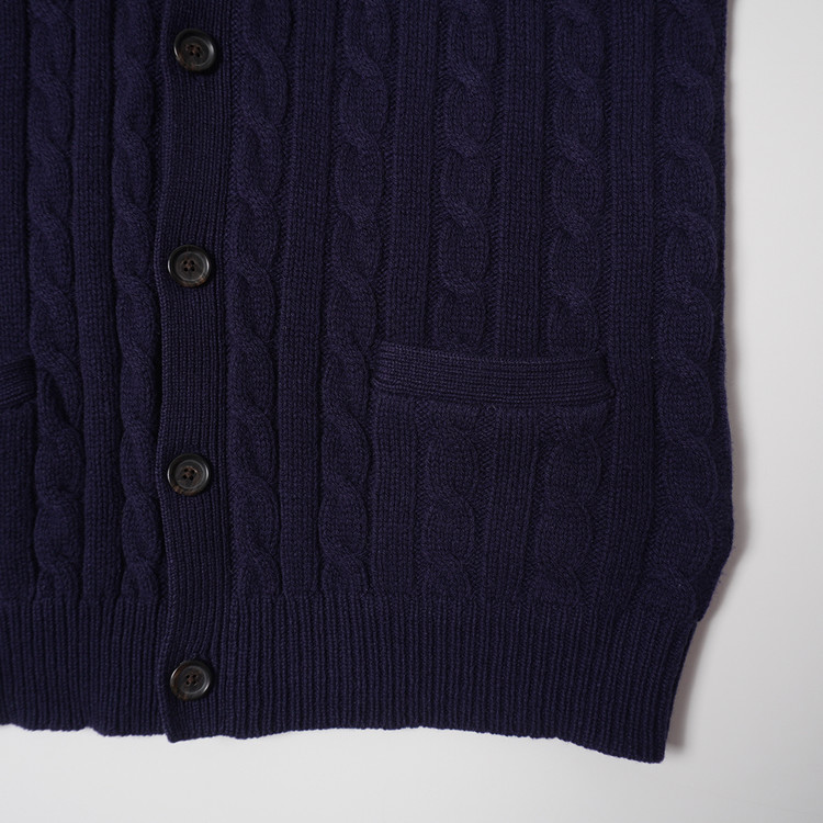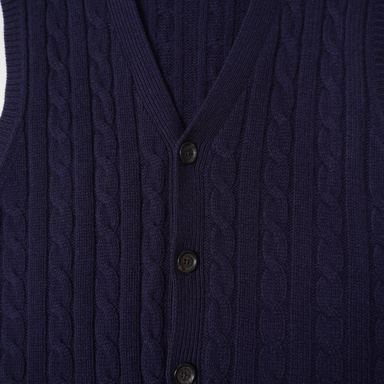네이비 울/캐시미어 케이블 니트 버튼 베스트