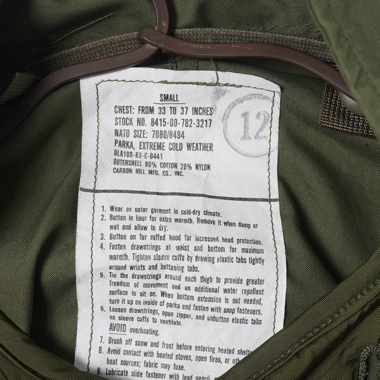 83년 생산의 미군 M65 피시테일 파카입니다. 내피는 73년 생산제품으로 사용감 거의 없는 데드스탁이라고 보셔도 무방할 정도의 컨디션입니다. 군납 제품 특성상 재봉부분의 실밥들도 정리안한 상태로 그대로 유지하였으며 손목 밴딩늘어남도 전혀 없습니다. 오염/데미지 없이 매우 우수한 커디션, 사이즈 또한 귀한 S 사이즈입니다. 국내 남성 넉넉한 L-XL 사이즈 정도 추천드리며 강력 추천드리는 제품입니다.