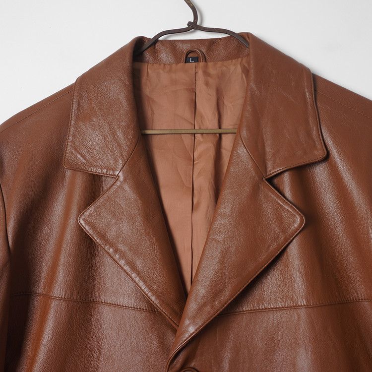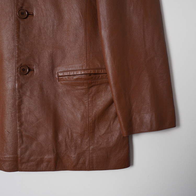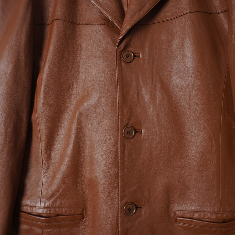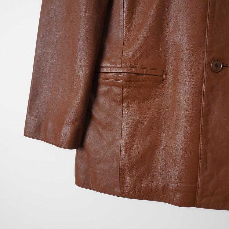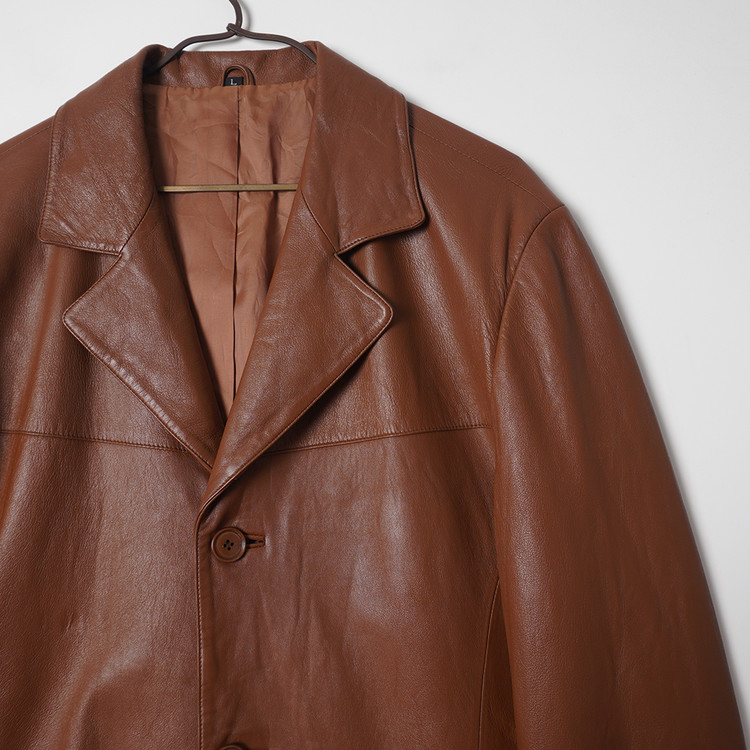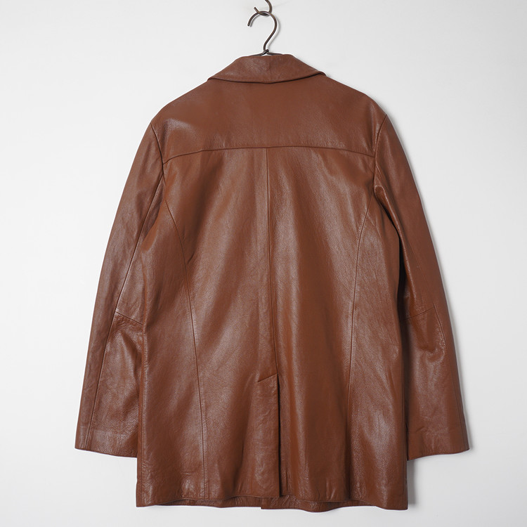3버튼 형식의 브라운 컬러 양가죽 하프코트입니다. 블레이져 형식의 하프코트 기장감의 제품으로 가벼운 착용감과 우수한 컨디션의 제품입니다.