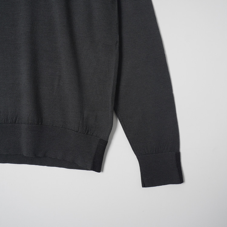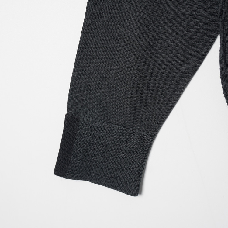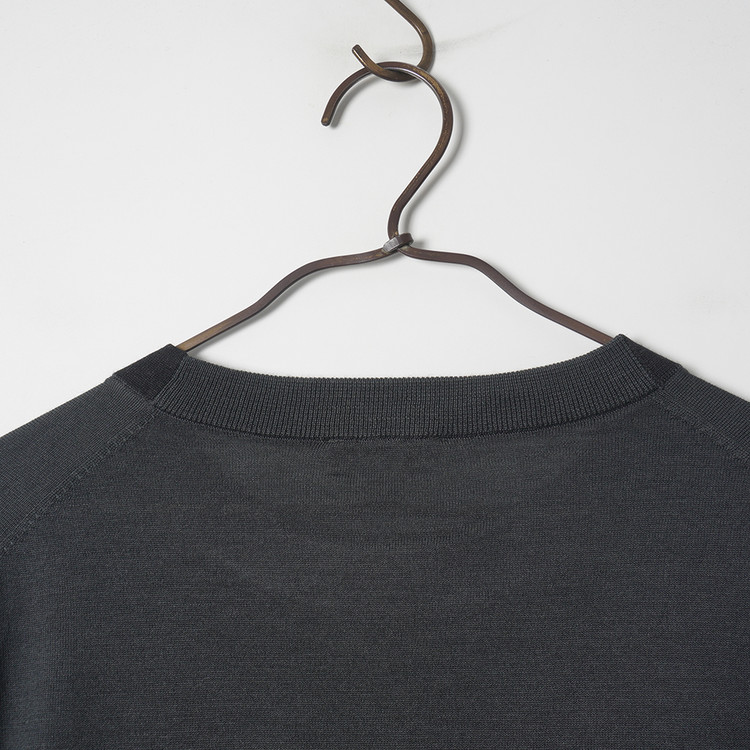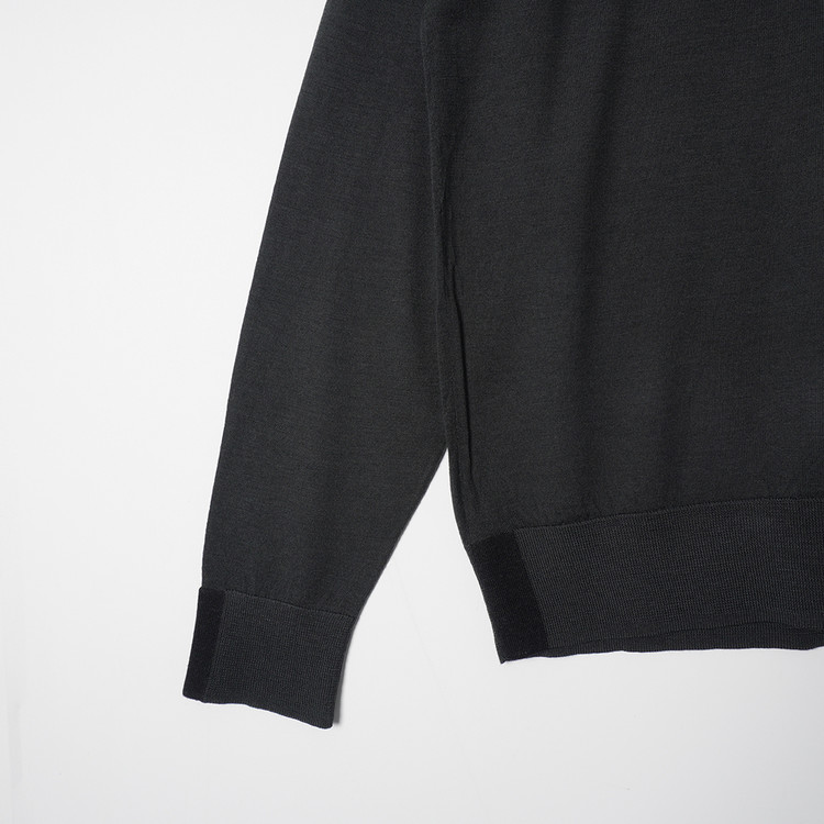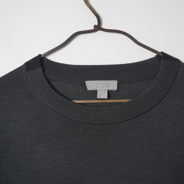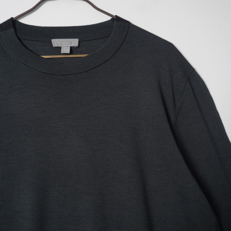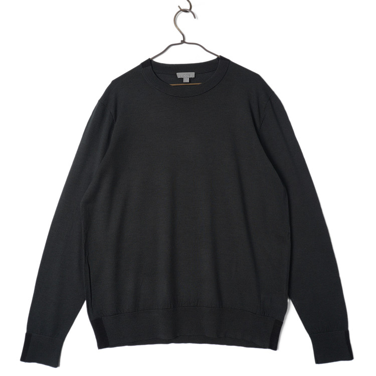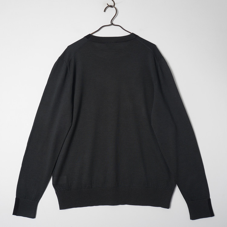얇은 소재의 메리노 울 니트입니다. 넥,소매, 밑단에 약간씩의 포인트 컬러가 들어간 제품으로 사용감 적은 매우 우수한 컨디션