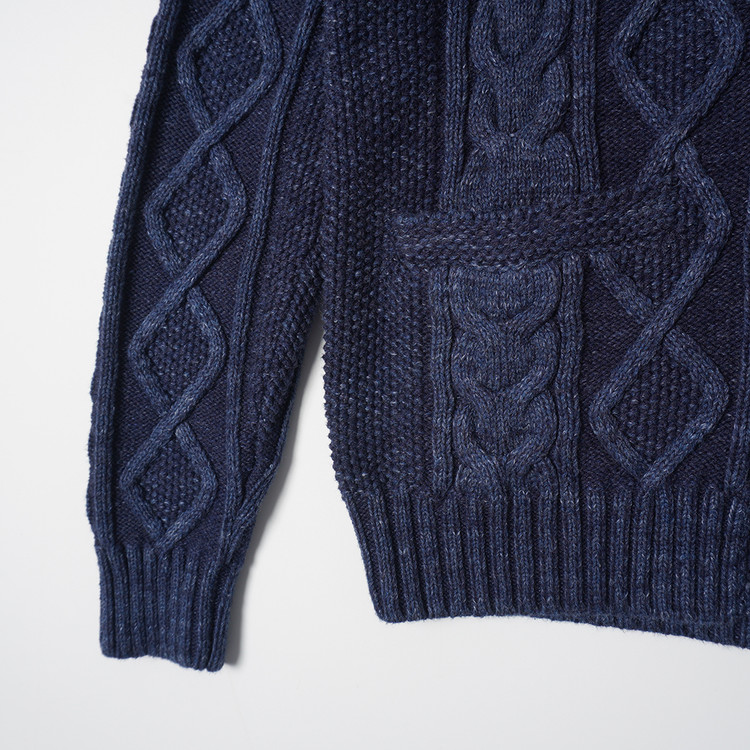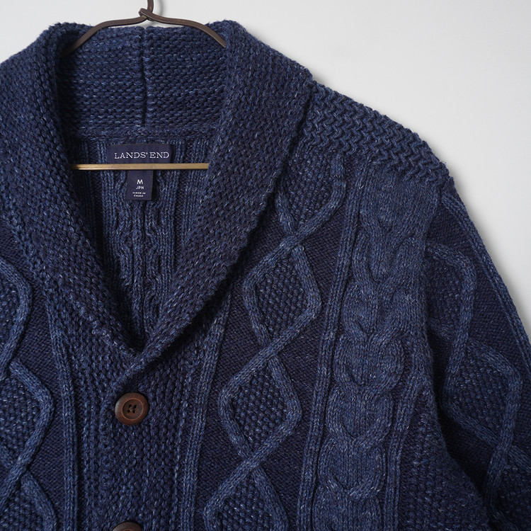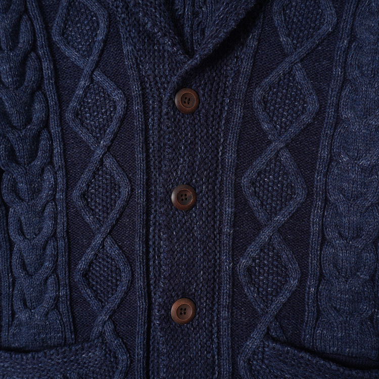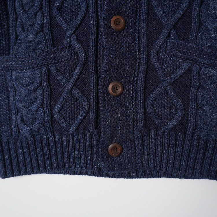 피셔맨 스타일의 두툼한 코튼 니트 가디건입니다. 사용감 적은 우수한 컨디션