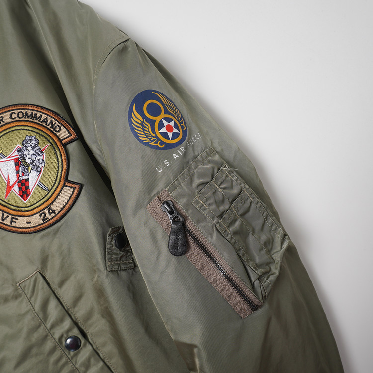 프로퍼의 Ma-1 플라이트 자켓입니다. 넉넉한 사이즈와 패치디테일이 멋진제품입니다. 전체적인 컨디션 우수하나 지퍼 이슈가 잇습니다. 지퍼 맨 아래 금속 클립 망실로 지퍼 작동은 하나 밑에서 벌릴경우 벌어지는 현상이 있습니다. 감안하여 저렴하게 소개드립니다.