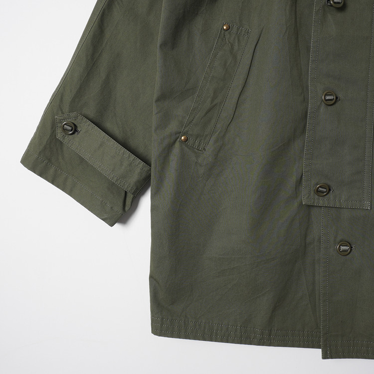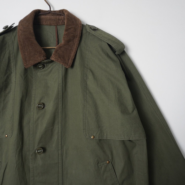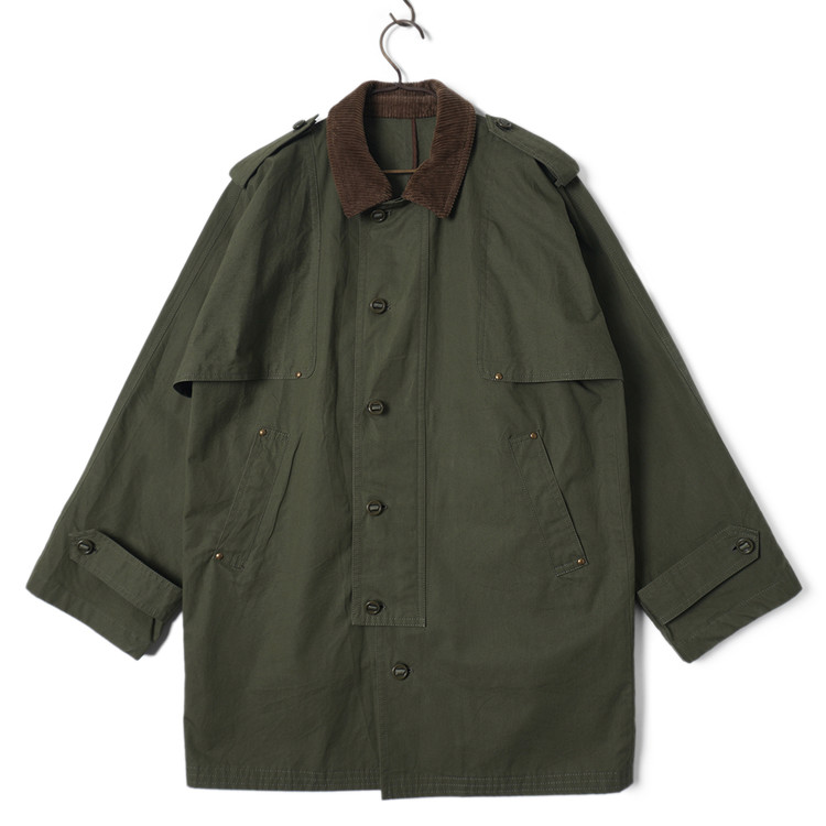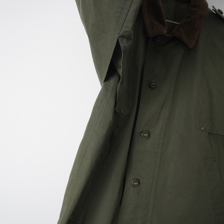 아웃도어/레인코트 스타일의 독특한 디자인의 코트입니다. 빳빳한 코튼원단이 사용되었으로 팔부분 더블 레이어 처리로 독특한 디자인의 제품입니다. 사용감 적은 우수한 커디션으로 국내 남성 L, 여성 오버핏 Free 추천드립니다.