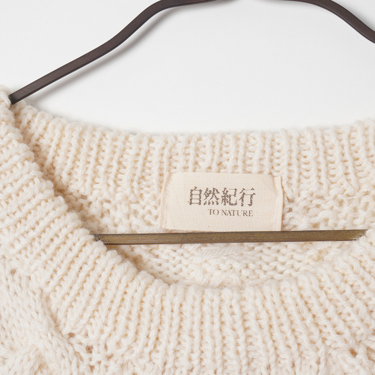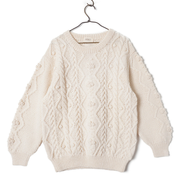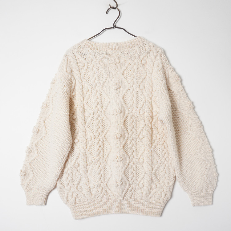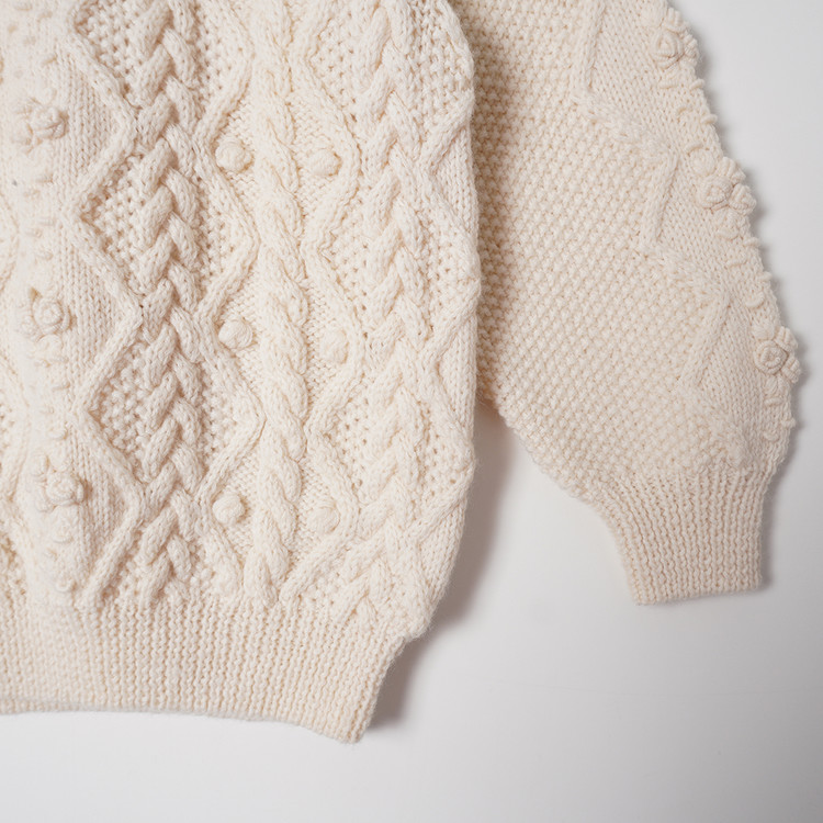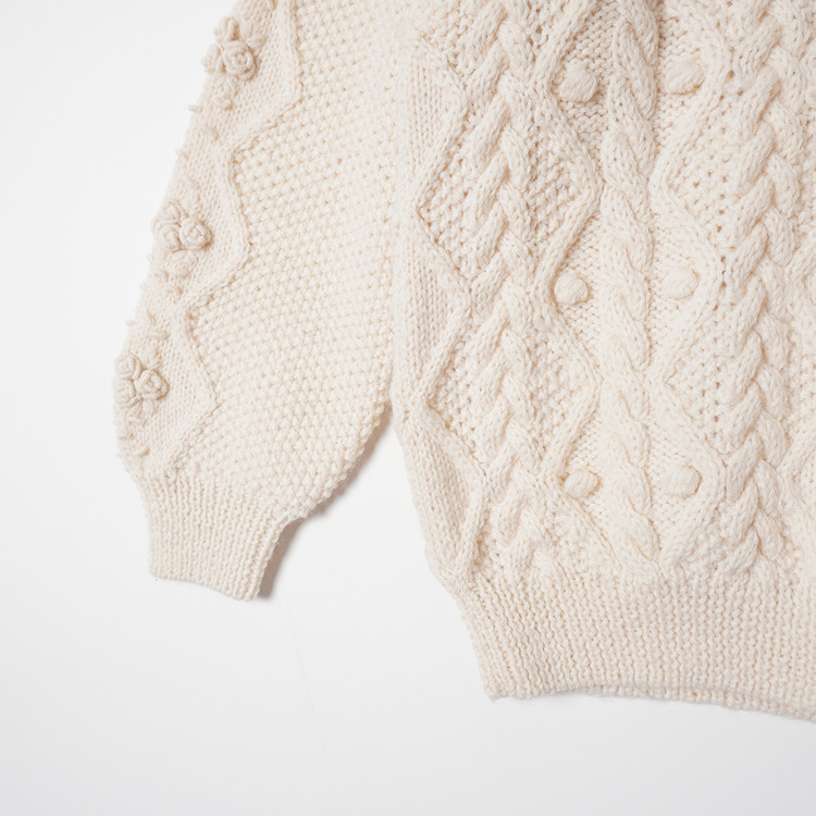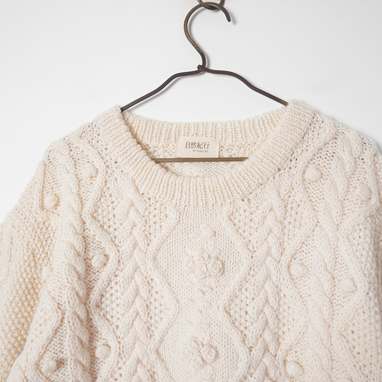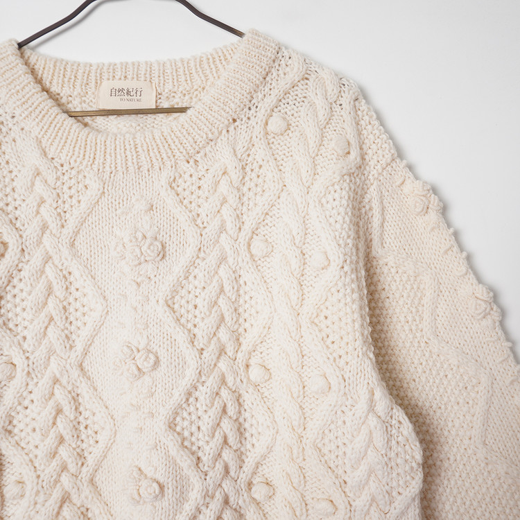 아란/피셔맨 니트 스타일의 울 니트 스웨터입니다.