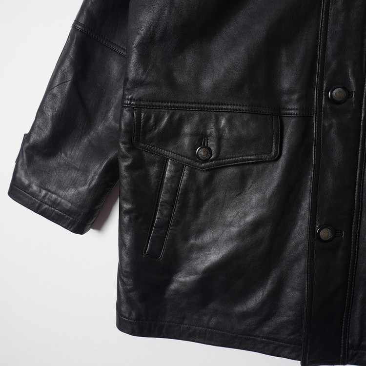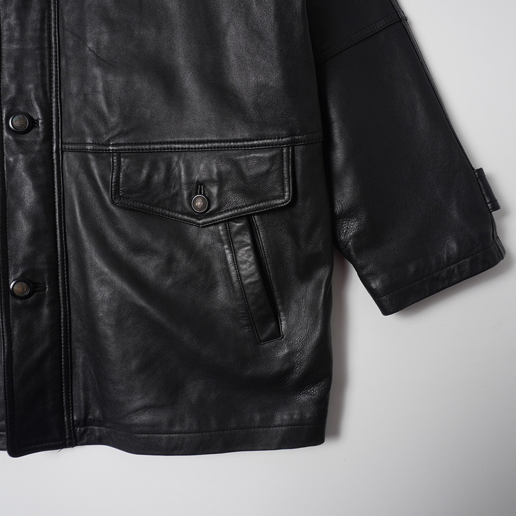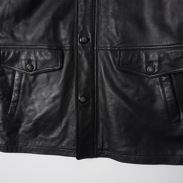 래글런 어깨의 스탠다드한 스타일, 양가죽이 사용된 사파리/카코트입니다. 지퍼/버튼 플라이 여밈방식이며 스탠다드한 디자인의 제품입니다.  국내 남성 L, 여성 오버핏 Free 사이즈 추천드립니다.