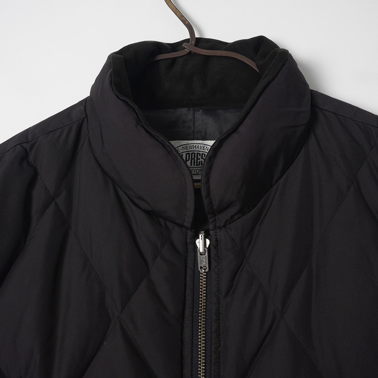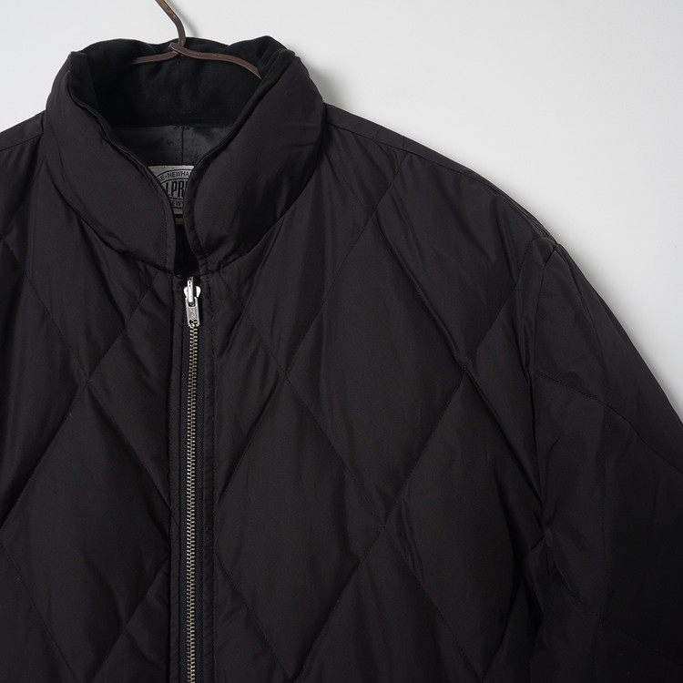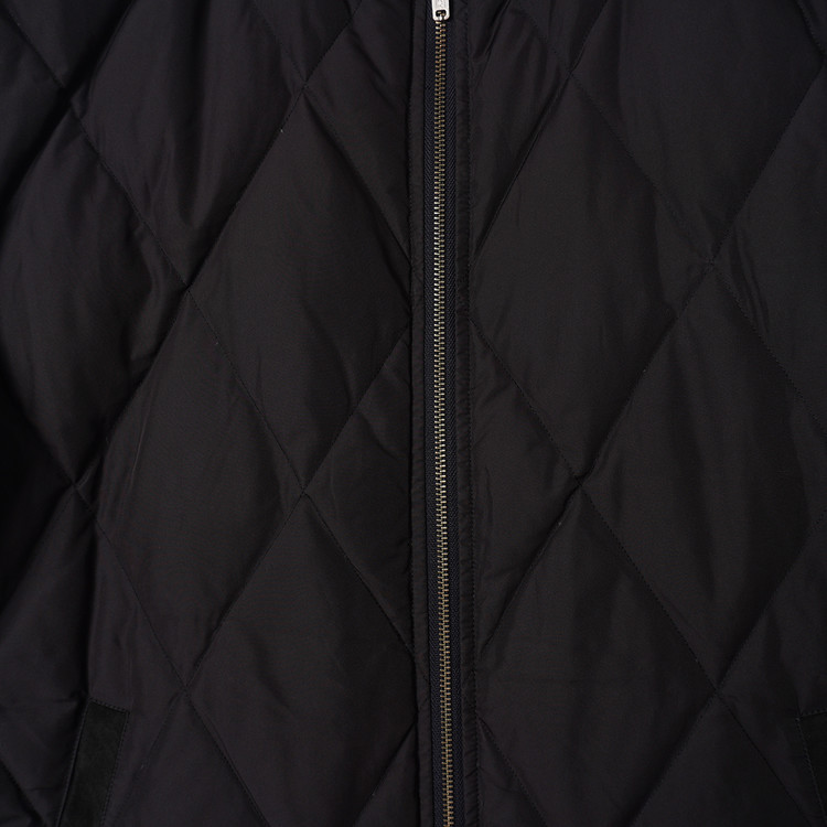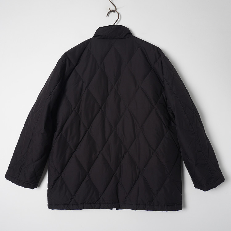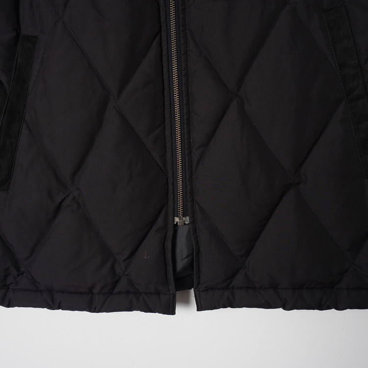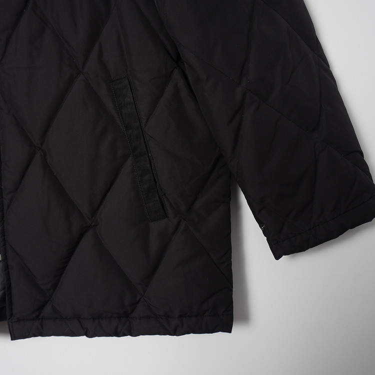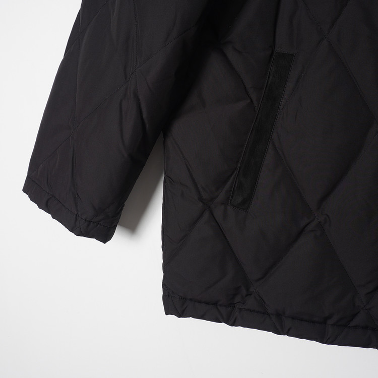 블랙컬러의 퀼티드 다운 자켓입니다. 심플한 다이아몬드 퀼팅 스타일로 활용도 높은 제품입니다.