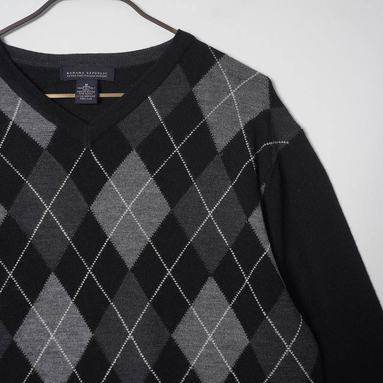 메리노울 아가일 패턴 니트 풀오버