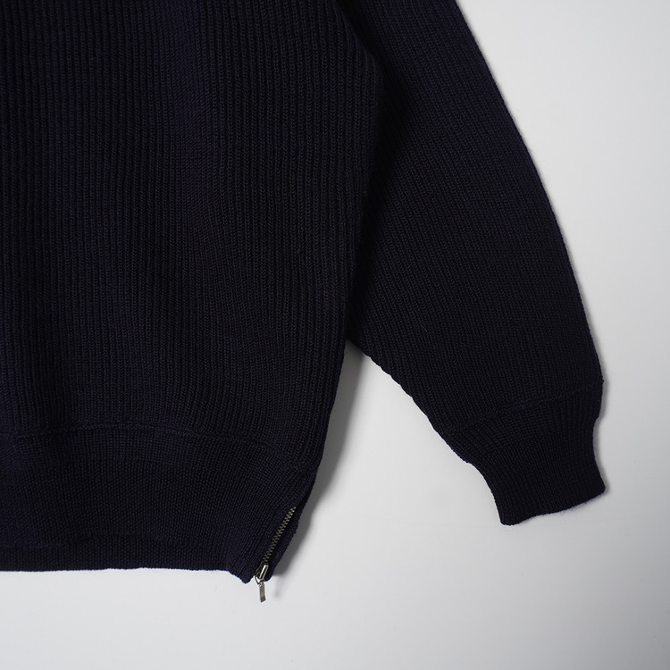 넉넉한 핏감과 두께감있는 탄탄한 직조감의 울 니팅, 넥라인, 밑단 리브 지퍼 디테일의 빈티지 MFG 피스입니다 사용감 적은 우수한 컨디션