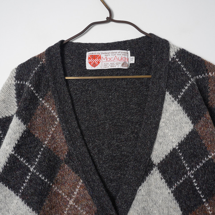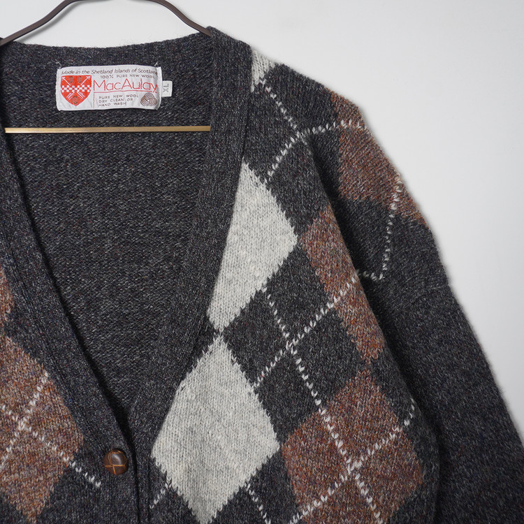 우먼즈 셰틀랜드 울 아가일 니트 가디건