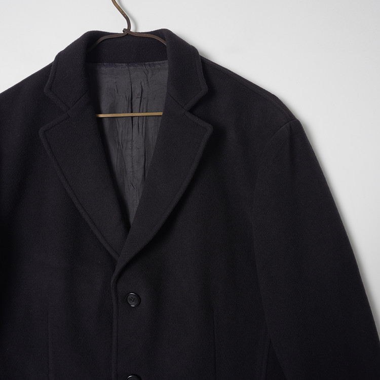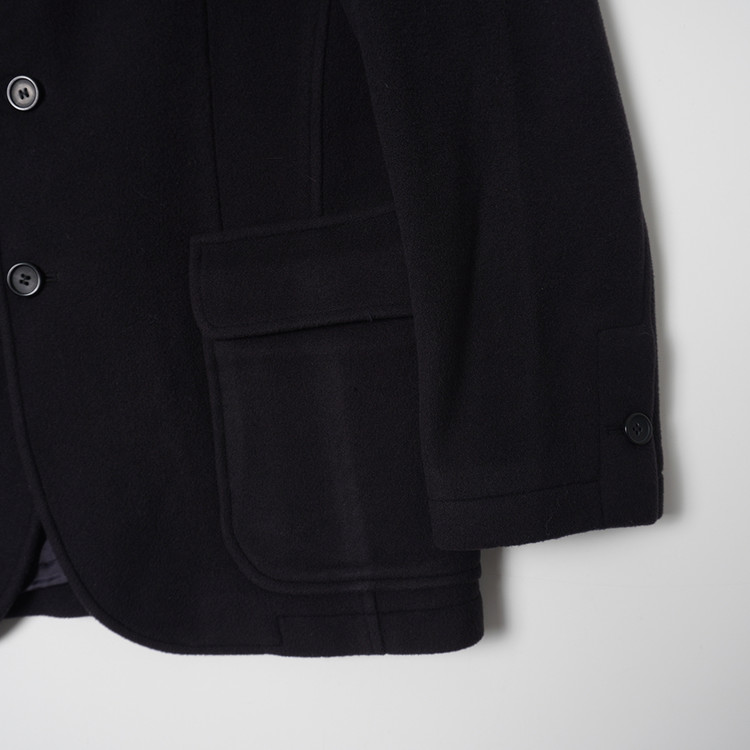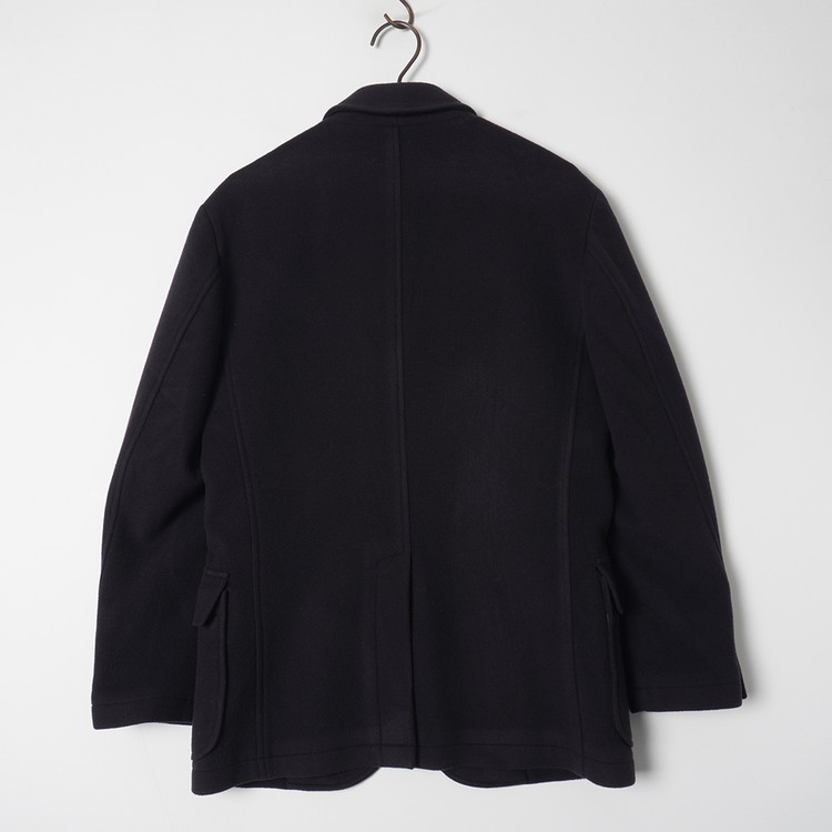 페이딩된 다크네이비 컬러감의 울 모직 버튼 자켓입니다. 독특한 색감의 코트 정도의 두께감으로 우수한 컨디션 유지중입니다. 국내 남성 M, 여성 Free 추천드립니다.