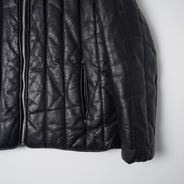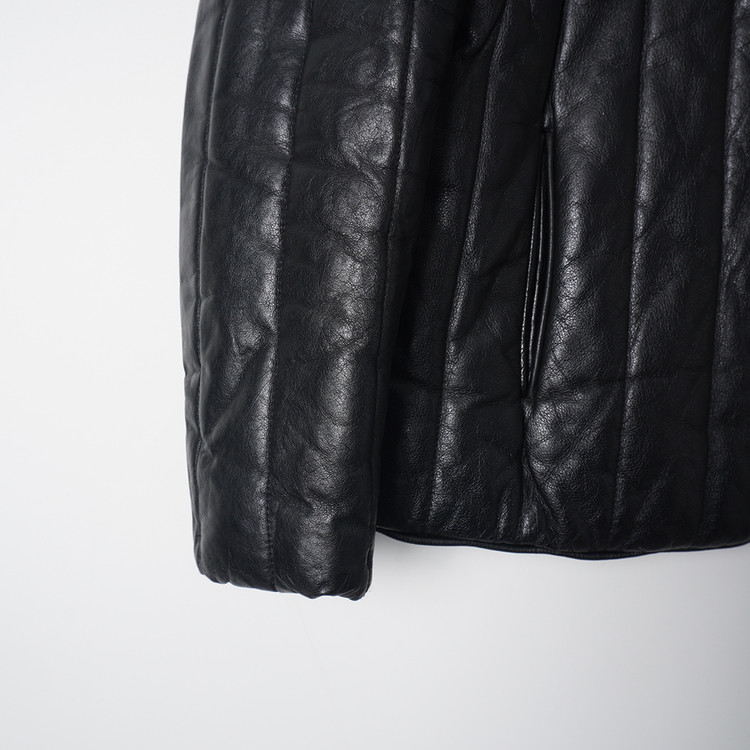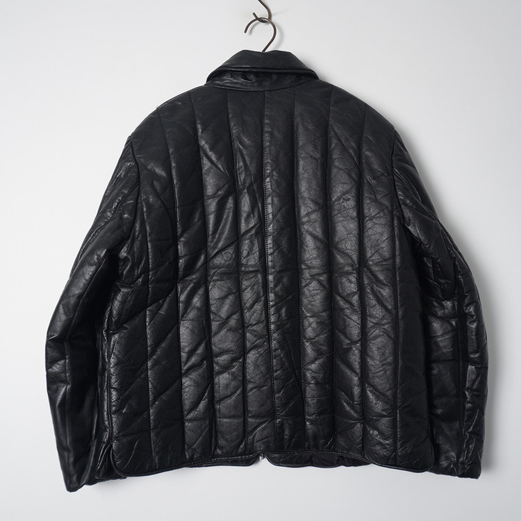 폴리솜 충전재가 들어있는 소가죽 패딩자켓입니다. 국내 남성 L사이즈 정도 추천드립니다.