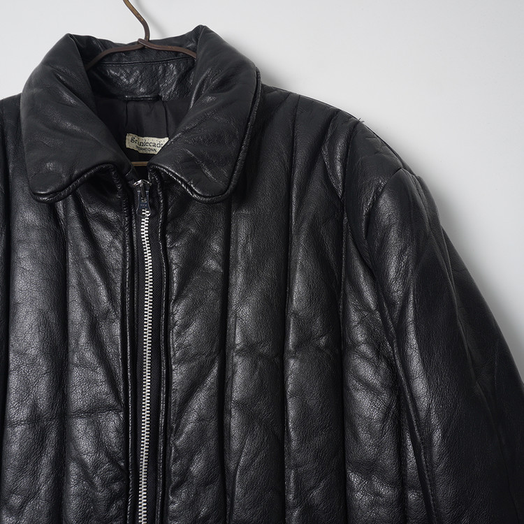 빈티지 소가죽 파이핑 패딩 집업 자켓