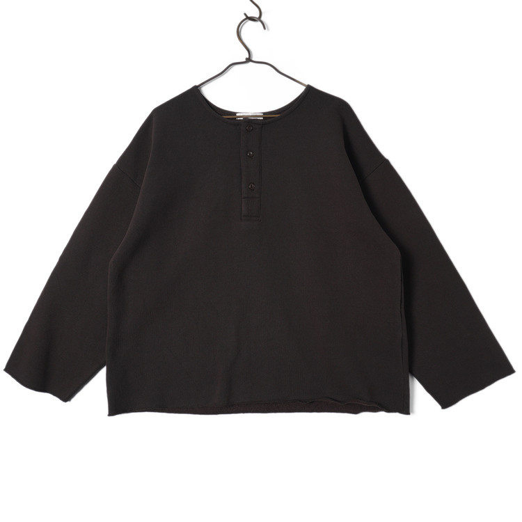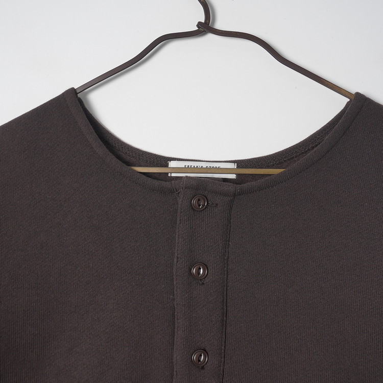 기모감 있는 스웻셔츠 원단이 사용된 헨리넥 풀오버입니다. 밑단,리브 컷오프, 오바로크 처리된 스타일로 넉넉한핏의 레이어드 착용에 용의한 제품입니다.