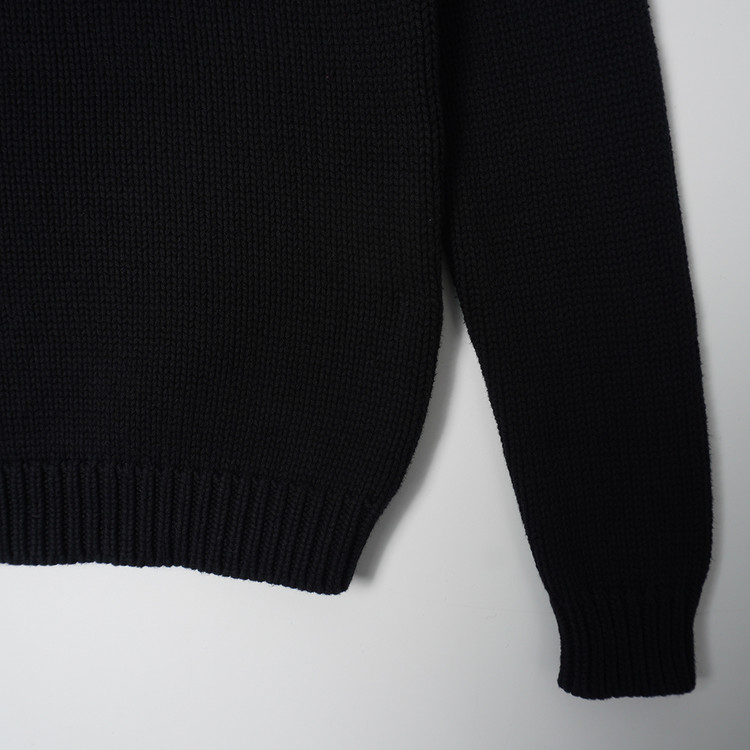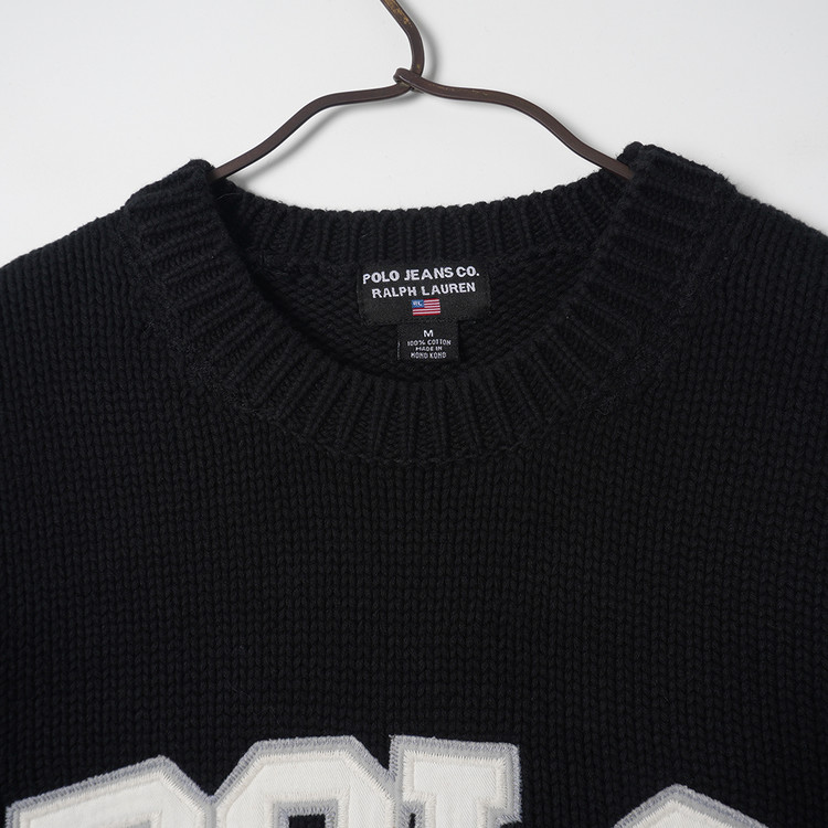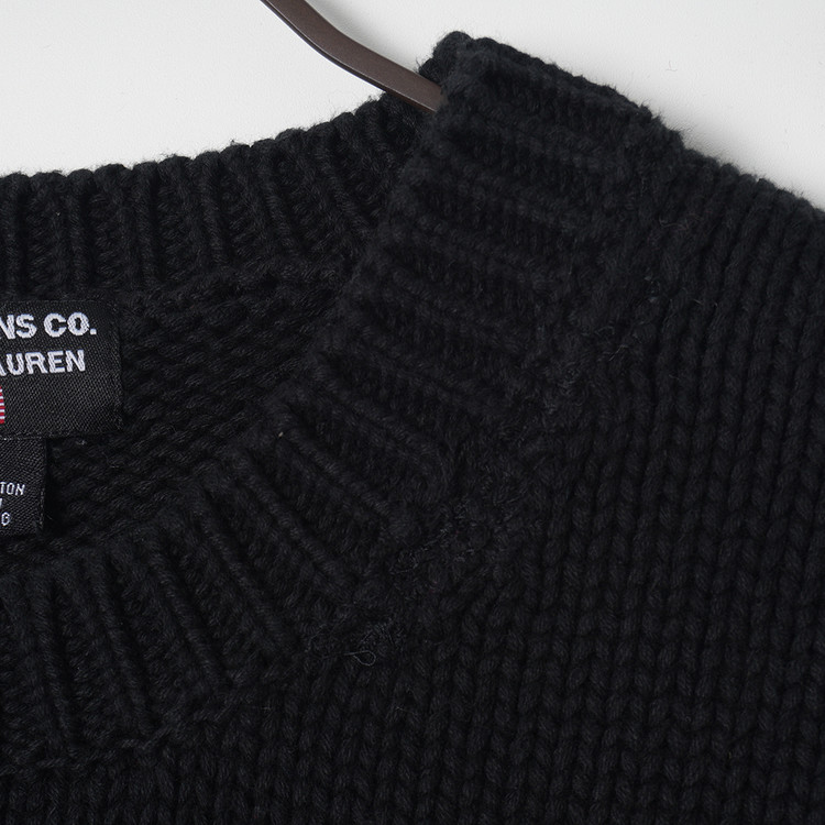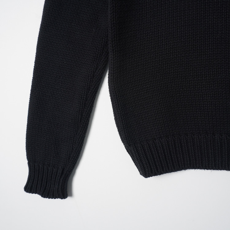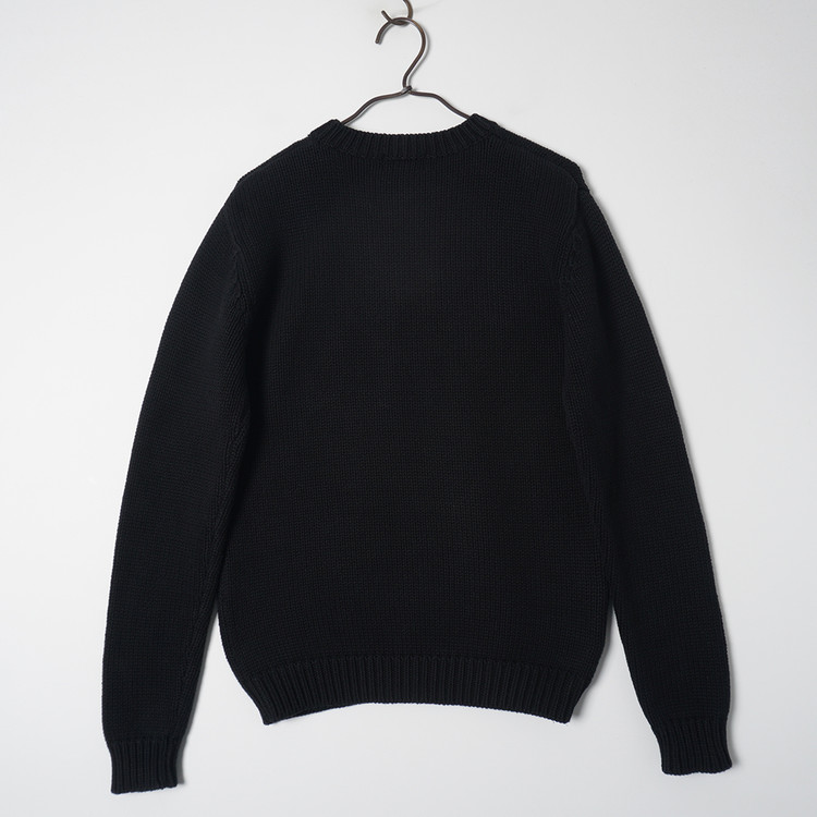 블랙컬러의 촘촘한 니팅감의 헤비코튼 니트입니다.  넥라인 보강 수선 흔적 보이나 착용시 눈에 띄지 않으며 그외 우수한 컨디션, 남성 S-M, 여성 Free 사이즈 추천드립니다.