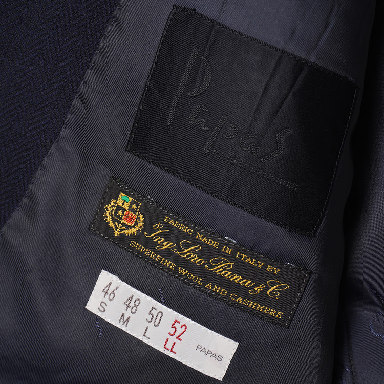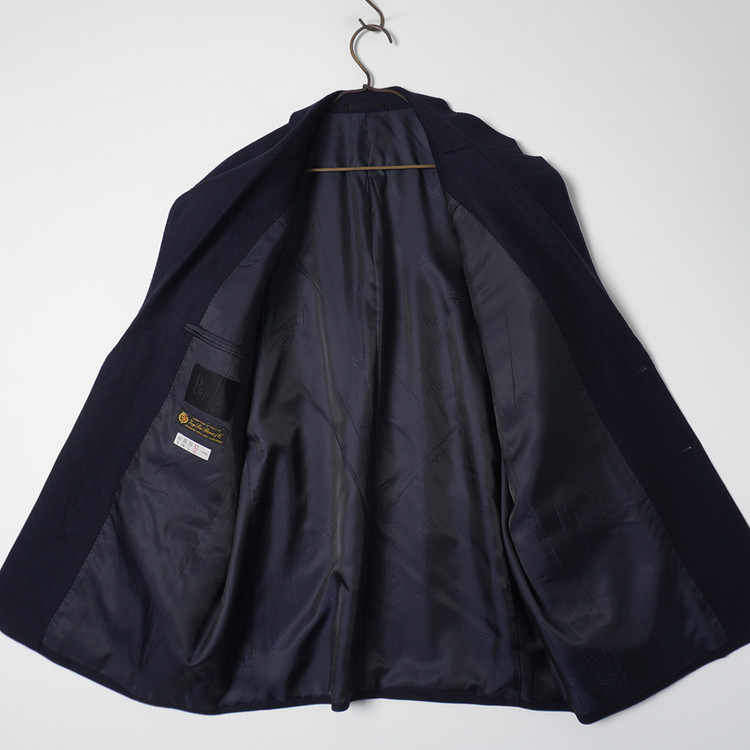 매우 부드럽고 가벼운 울/캐시미어 혼방의 로로피아나 원단이 사용된 2버튼 블레이져입니다. 52사이즈로 국내 XL이상 추천드립니다.