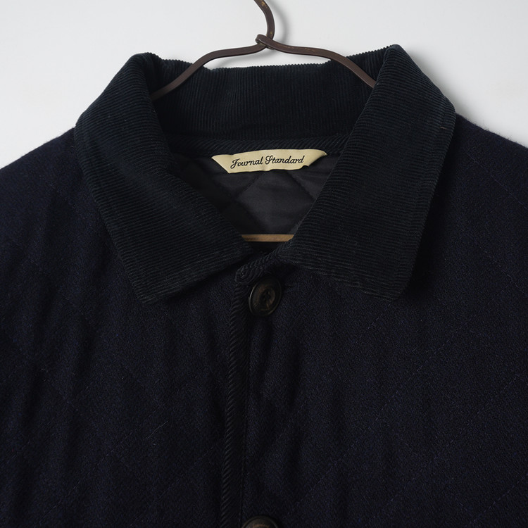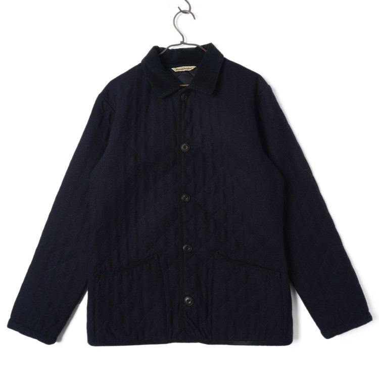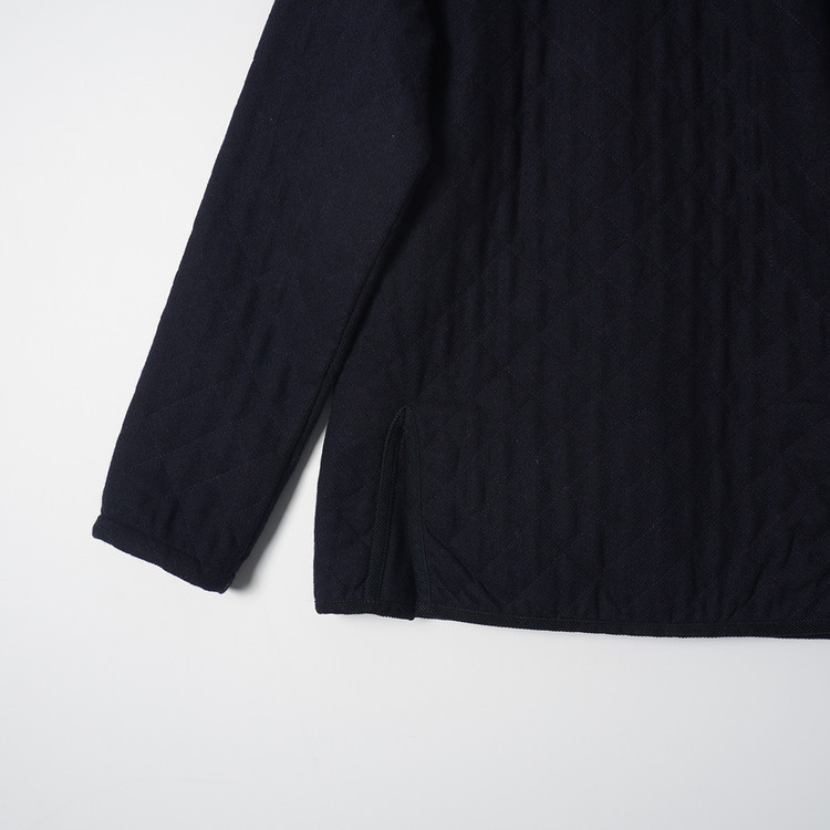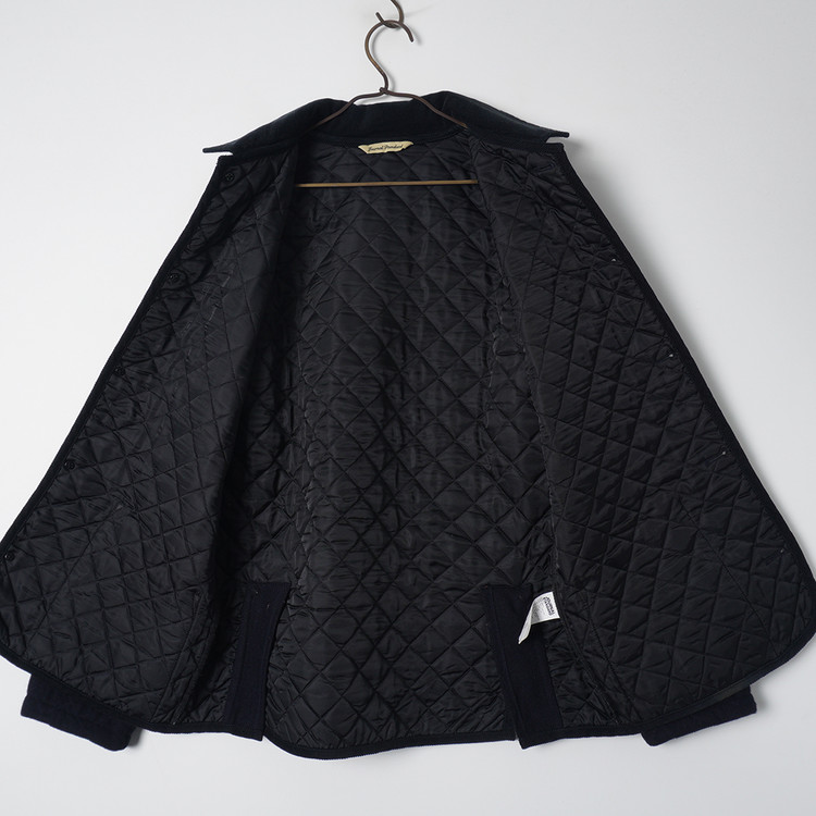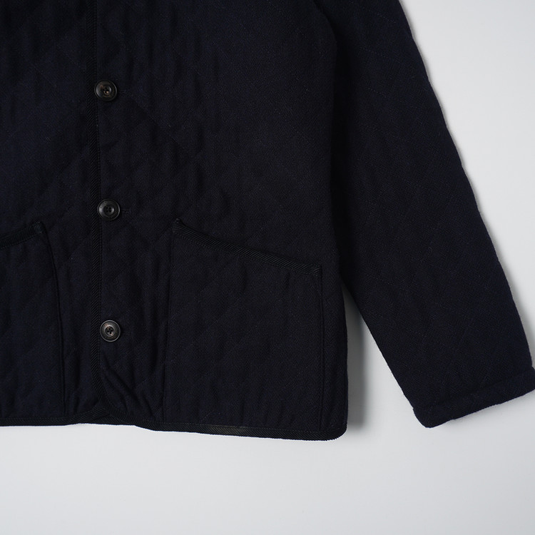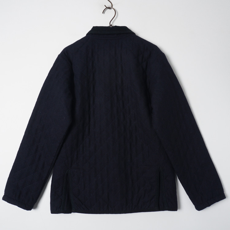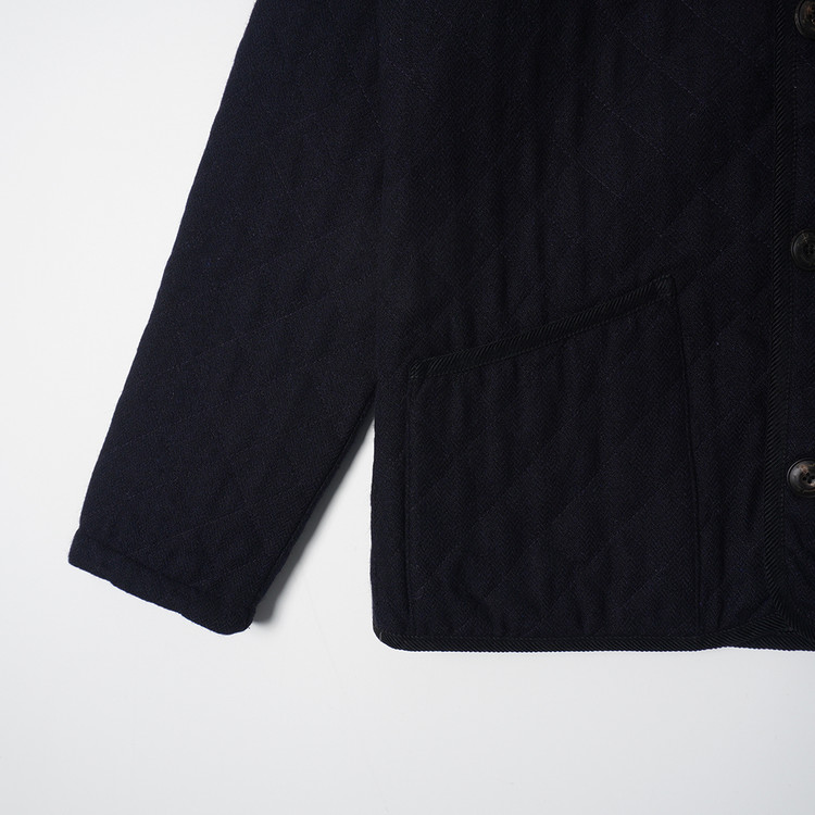 네이비 울블렌드 모직 퀼티드 버튼 자켓