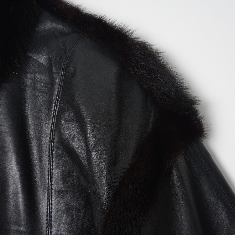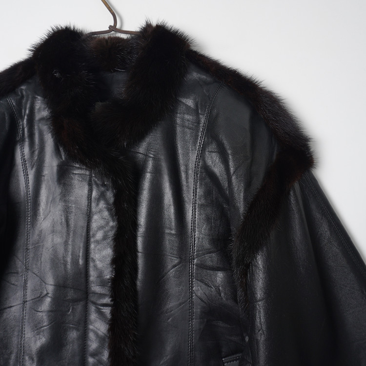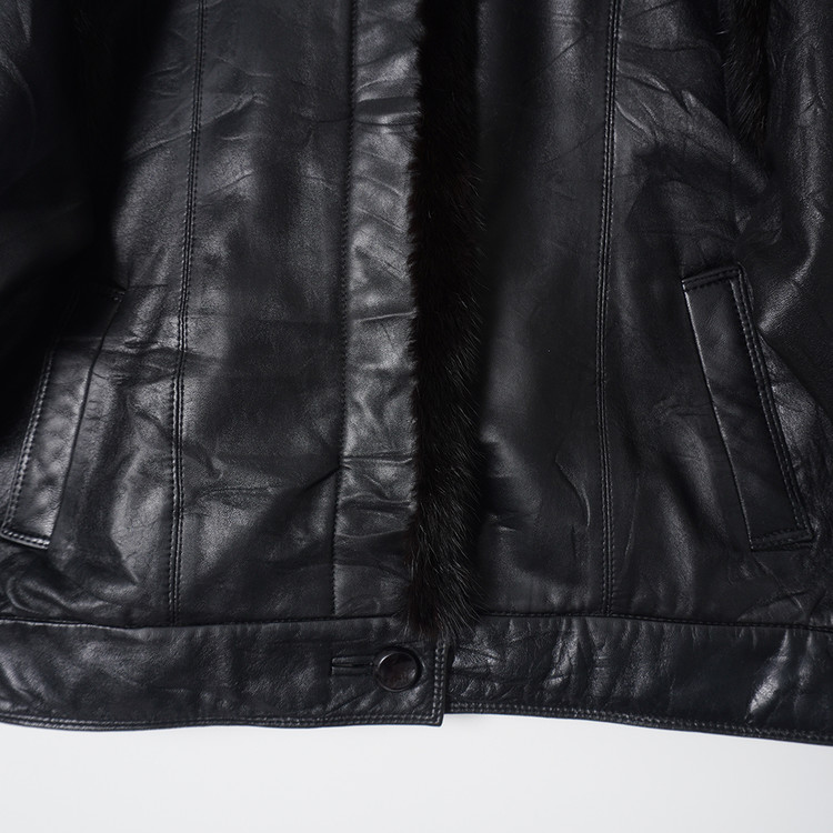 부분적으로 퍼 트리밍 사양의 소가죽 버튼 자켓입니다. 아우터 또는 미드레이어로 활용가능한 제품으로 국내 여성 M 사이즈 추천드립니다.