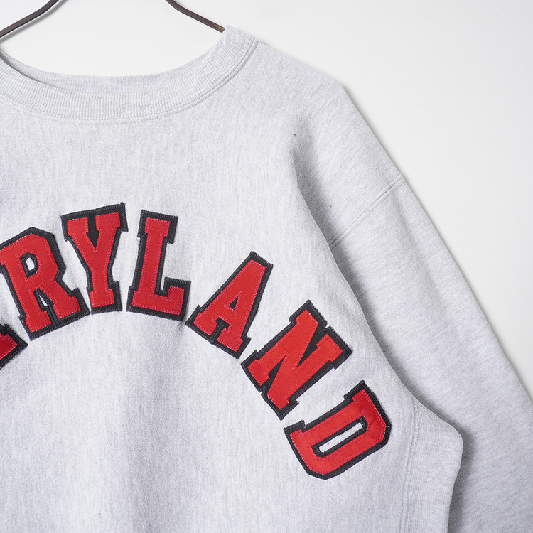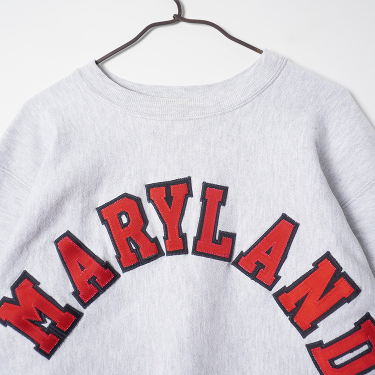 사용감 적은 우수한 컨디션, Maryland 패치 스펠아웃의 빈티지 리버스위브 스웻입니다. 강력세탁 완료되었으며 오염없이 깔끔한 상태로 입고되었습니다. XL 사이즈로 국내 남성 XL사이즈 추천드립니다.