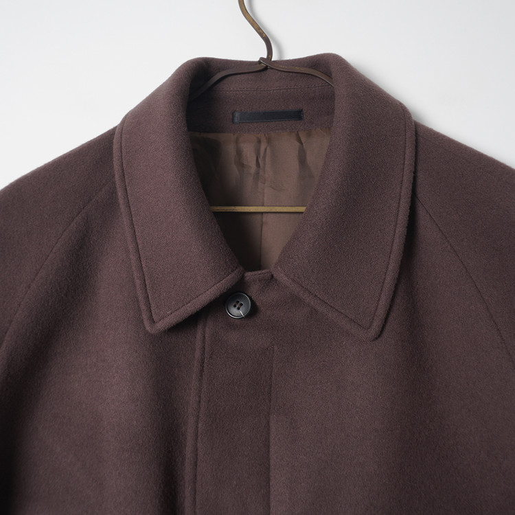 일반적인 발마칸 코트보다 짧은 길이감의 하프 발마칸 코트입니다. 브라운 컬러의 캐시미어/울 블렌드 모직원단이 사용되었으며 사용감 적은 매우 우수한 컨디션입니다. 국내 남성 L 사이즈 추천드립니다.