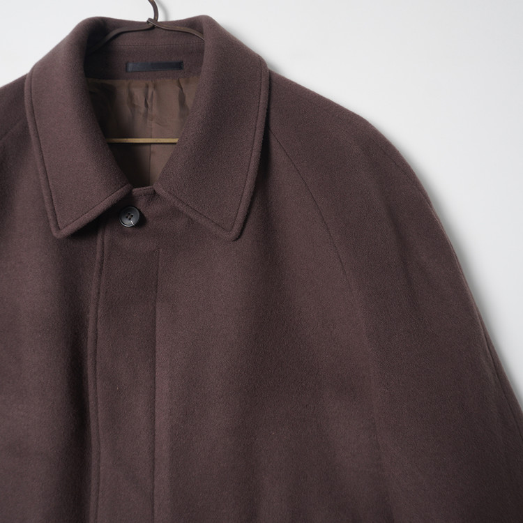 브라운 캐시미어/울 블렌드 하프 발마칸 코트