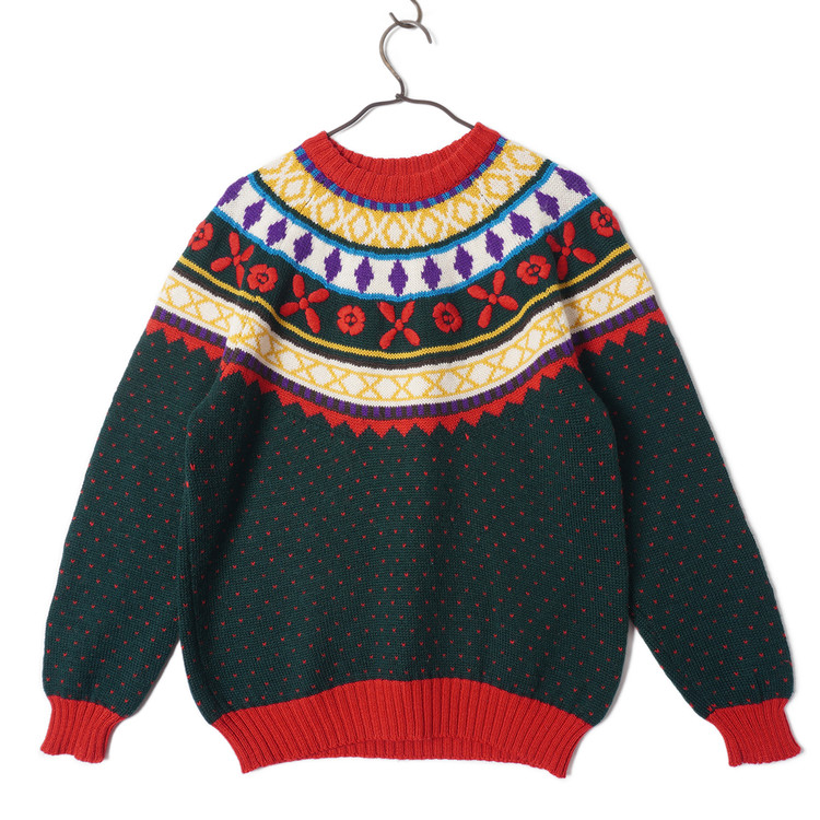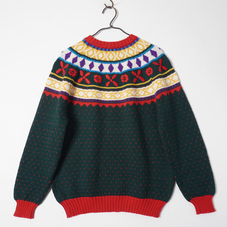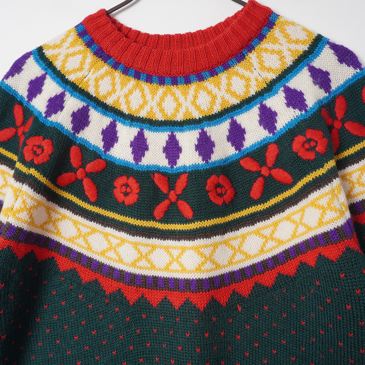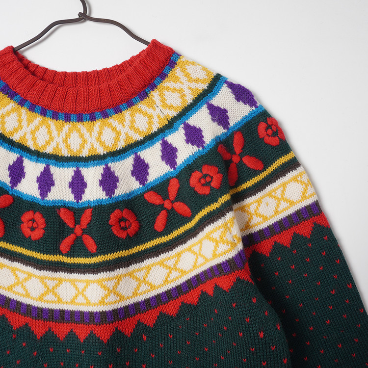 부분적으로 자수 처리된 노르딕 패턴의 니트 스웨터입니다. 사용감 적은 우수한 컨디션