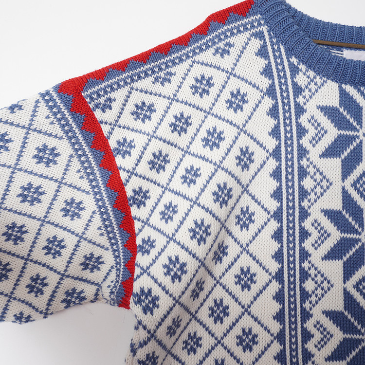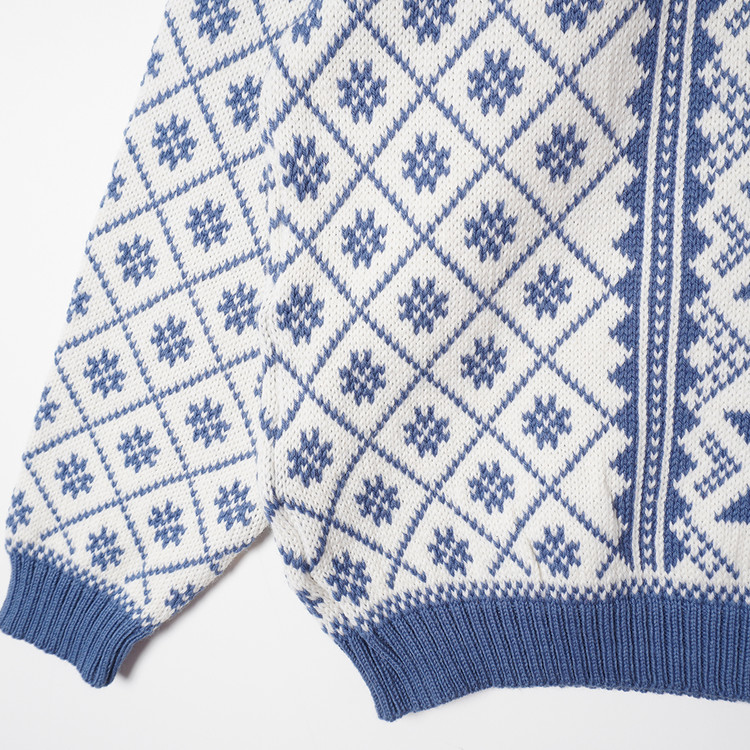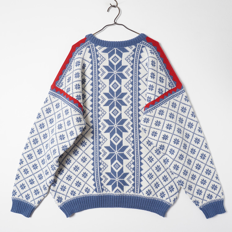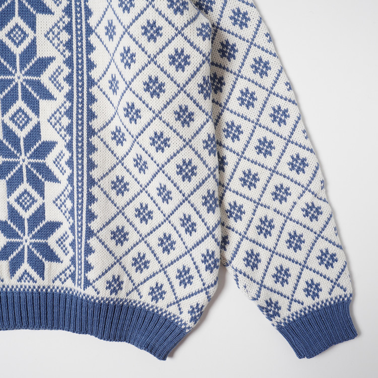 두툼한 상질의 울소재를 이용한 특유의 그래픽이 매력적인 노르딕 스웨터입니다.