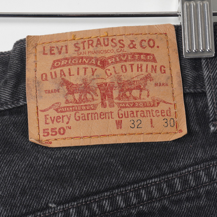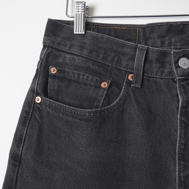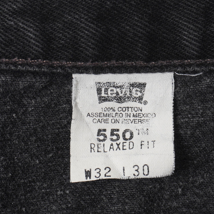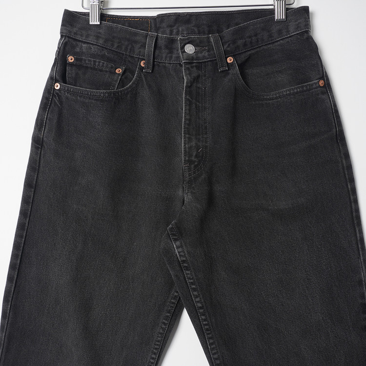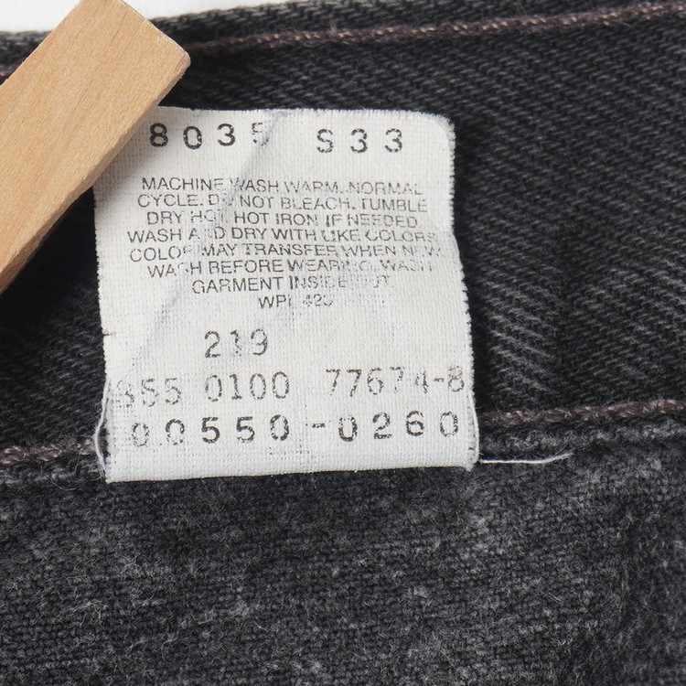 릴랙스핏으로 꾸준히 많이 찾으시는 빈티지 550 데님팬츠입니다. 워시드 블랙 컬러,  2000년 1월 생산분의 90년대 550과 같은 형식의 제품으로 우수한 컨디션.