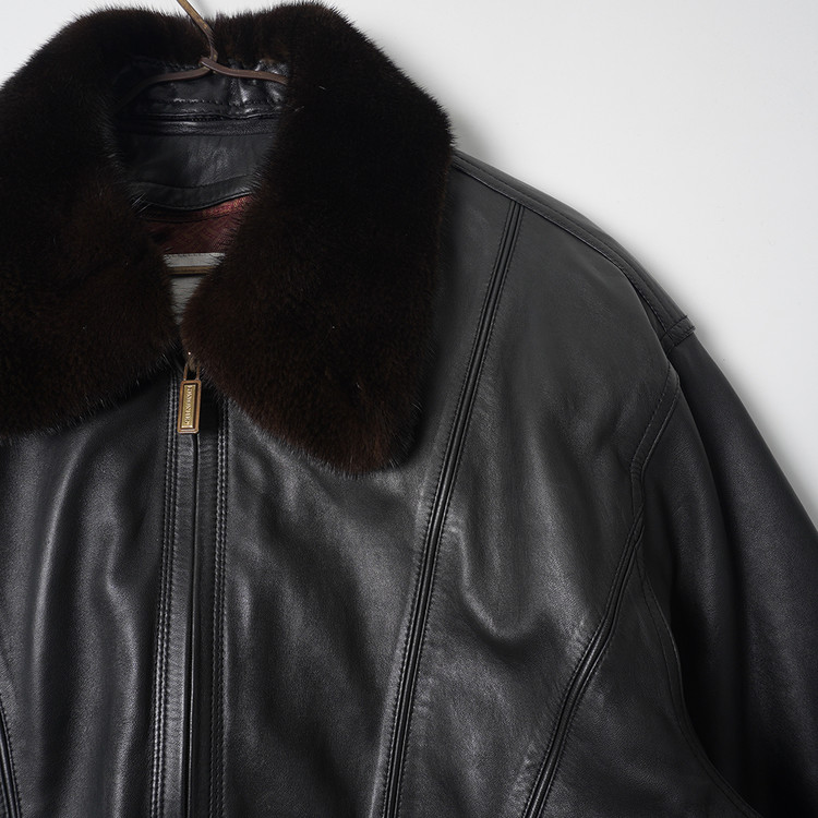 빈티지 양가죽 집업 봄버 자켓 (탈착식 퍼 카라, 탈착식 다운 패딩 안감)