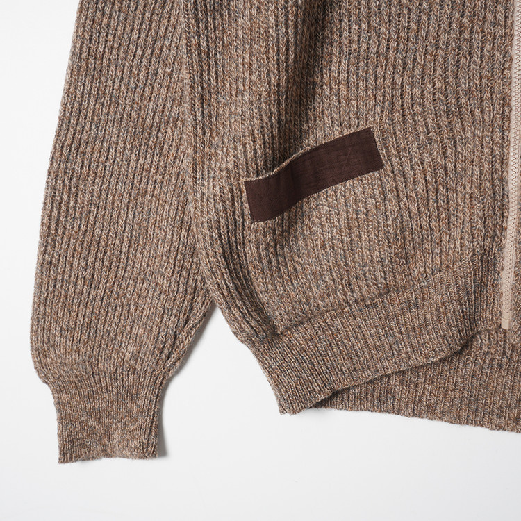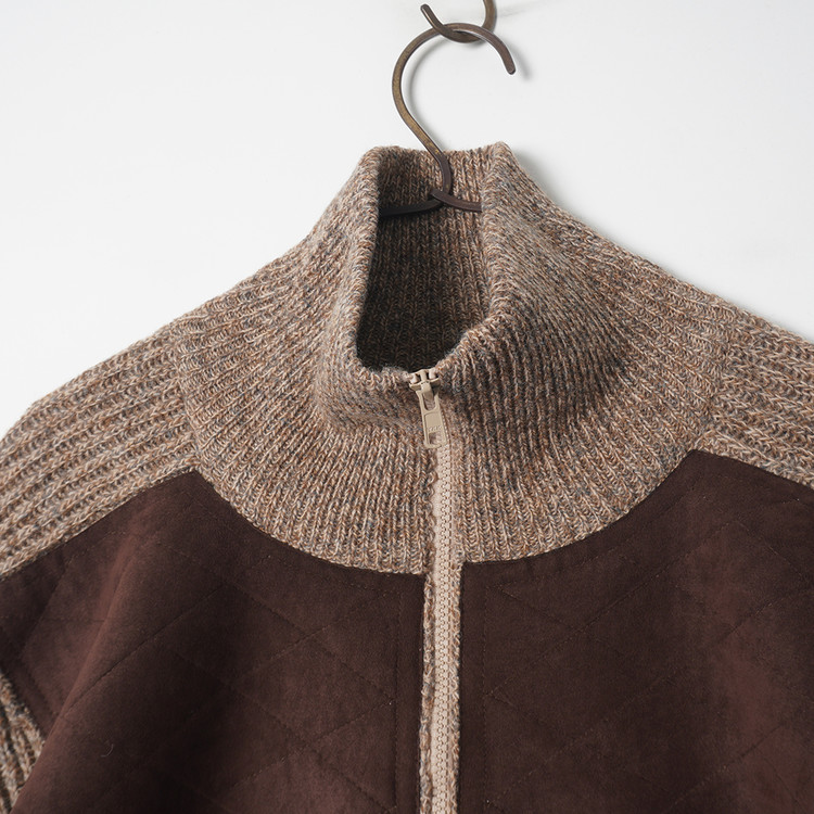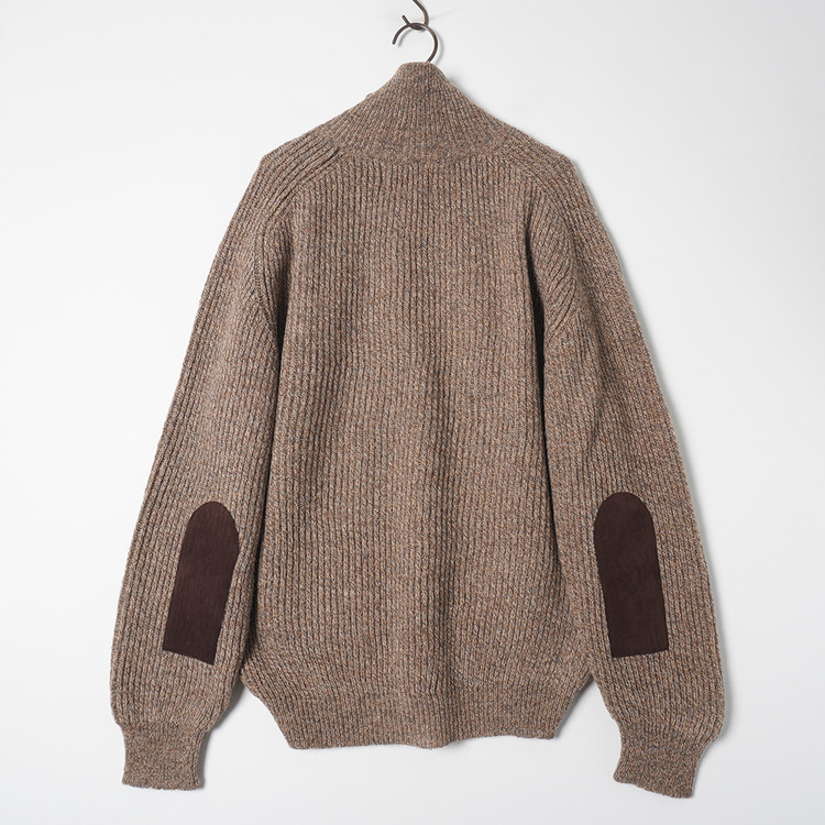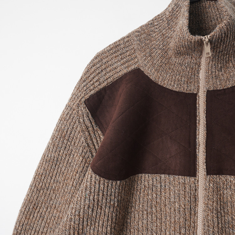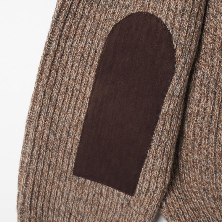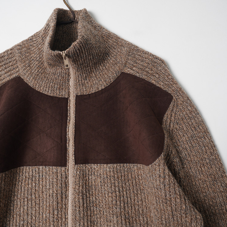 스웨이드 패치 울 니트 집업 가디건