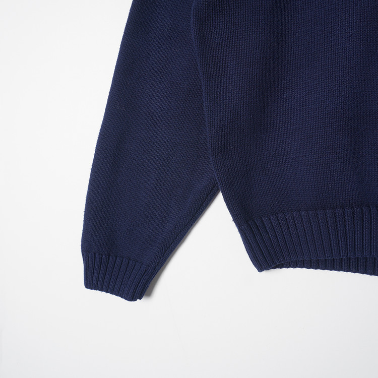 우먼즈 네이비 코튼 니트 스웨터