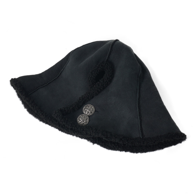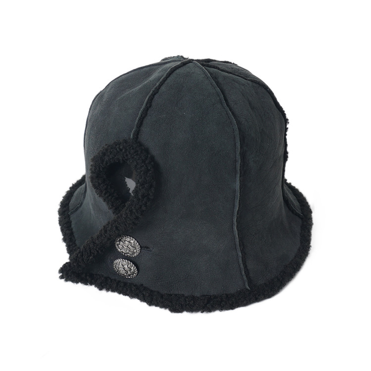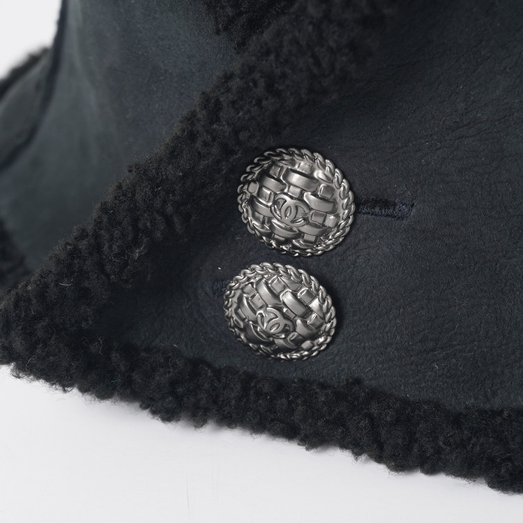 부드러운 램스킨 무톤 가죽이 사용된 빈티지 샤넬 버뮤다 햇입니다. 금속 로고버튼 디테일로 여밈부분에 사진과 같이 머리를 빼 착용할수도 있는 제품으로 흔치않은 빈티지 피스입니다. 국내 여성 Free 사이즈 추천드립니다.