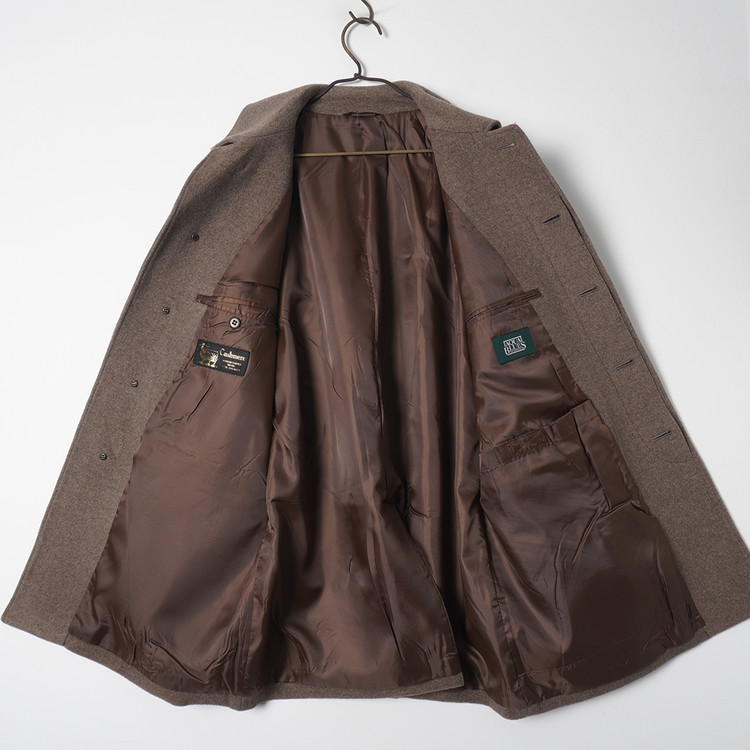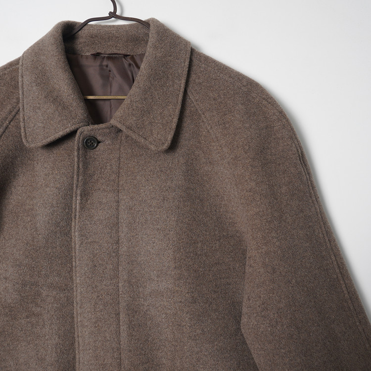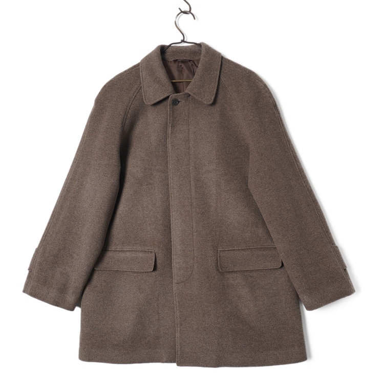 일반적인 발마칸 코트보다 짧은 길이감의 하프 발마칸 코트입니다. 브라운 계열 컬러의 캐시미어/울 블렌드 모직원단이 사용되었으며 사용감 적은  우수한 컨디션입니다. 국내 남성 넉넉한 M 사이즈 추천드립니다.