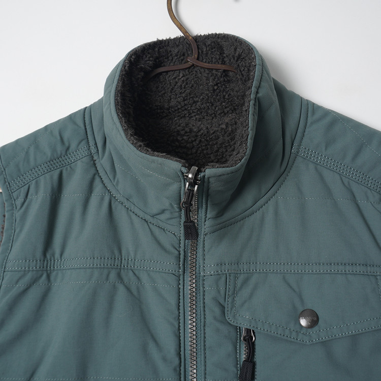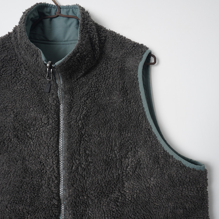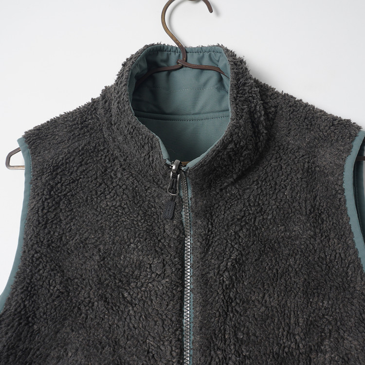 나일론 겉감과 보아 플리스 소재의 양면 베스트입니다. 폴리솜 충전재 사용으로 약간의 패딩감 있는 제품입니다. 사용감 거의 없는 매우 우수한 컨디션,  국내 남성 M, 여성 Free 사이즈 추천드립니다.
