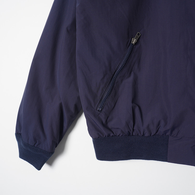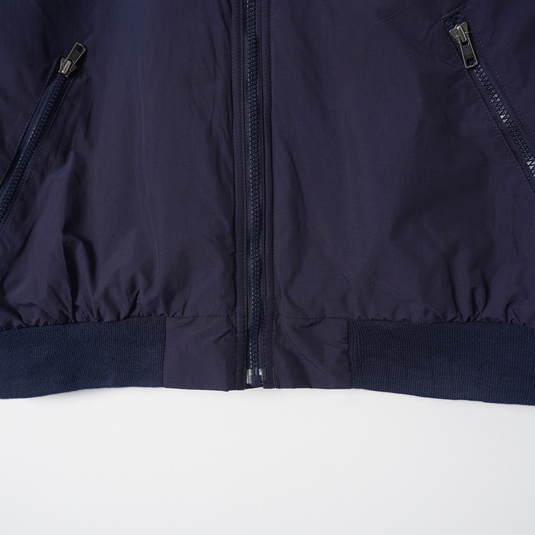 네이비 컬러의 나일론 겉감과 그레이 플리스 안감의 웜업자켓입니다. 사용감 적은 우수한 컨디션으로 표기사이즈 M , 실측사이즈 국내 남성 L, 여성 오버핏 free  추천드립니다.