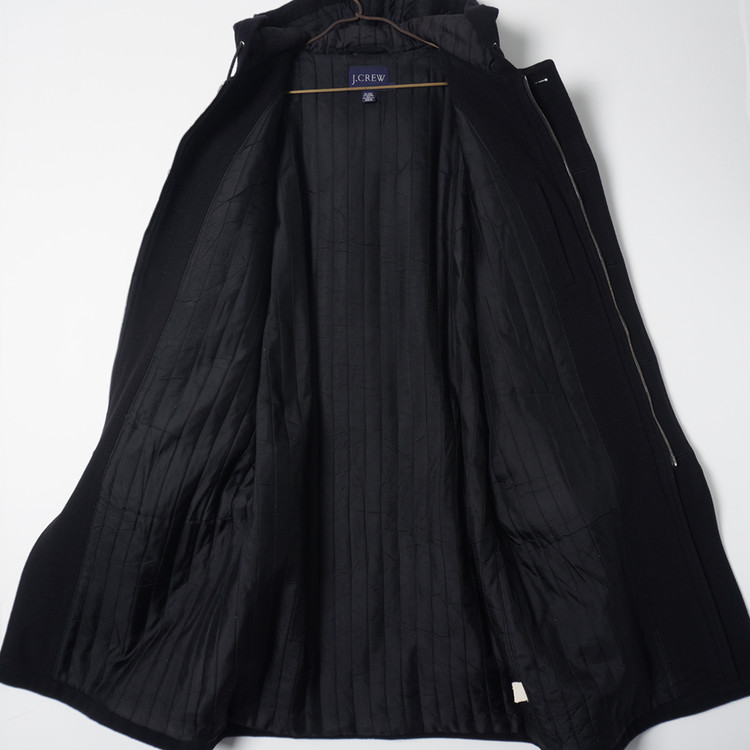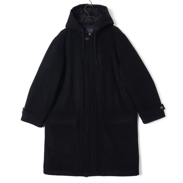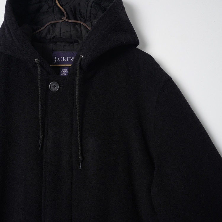 90's 제이크루 울/캐시미어 블렌드 블랙 모직 후드 코트